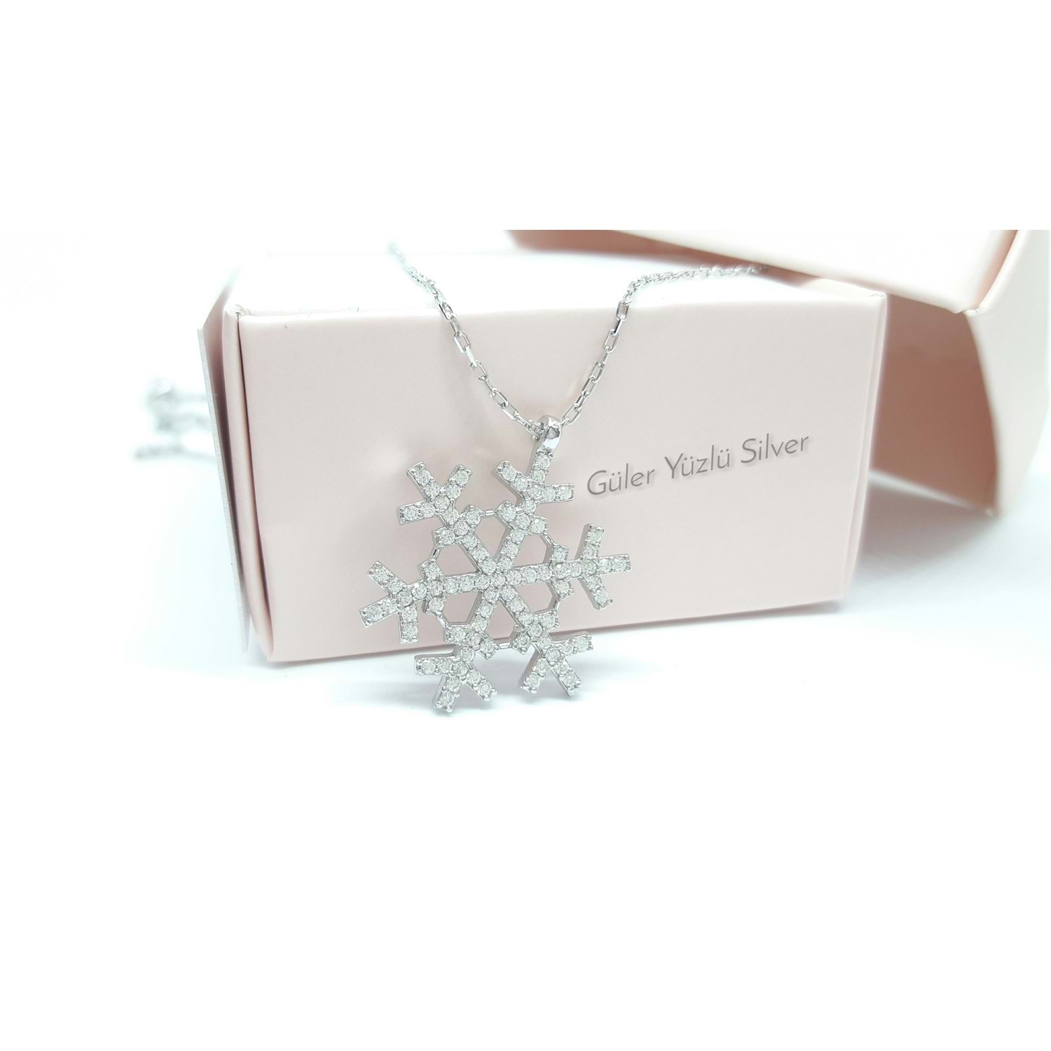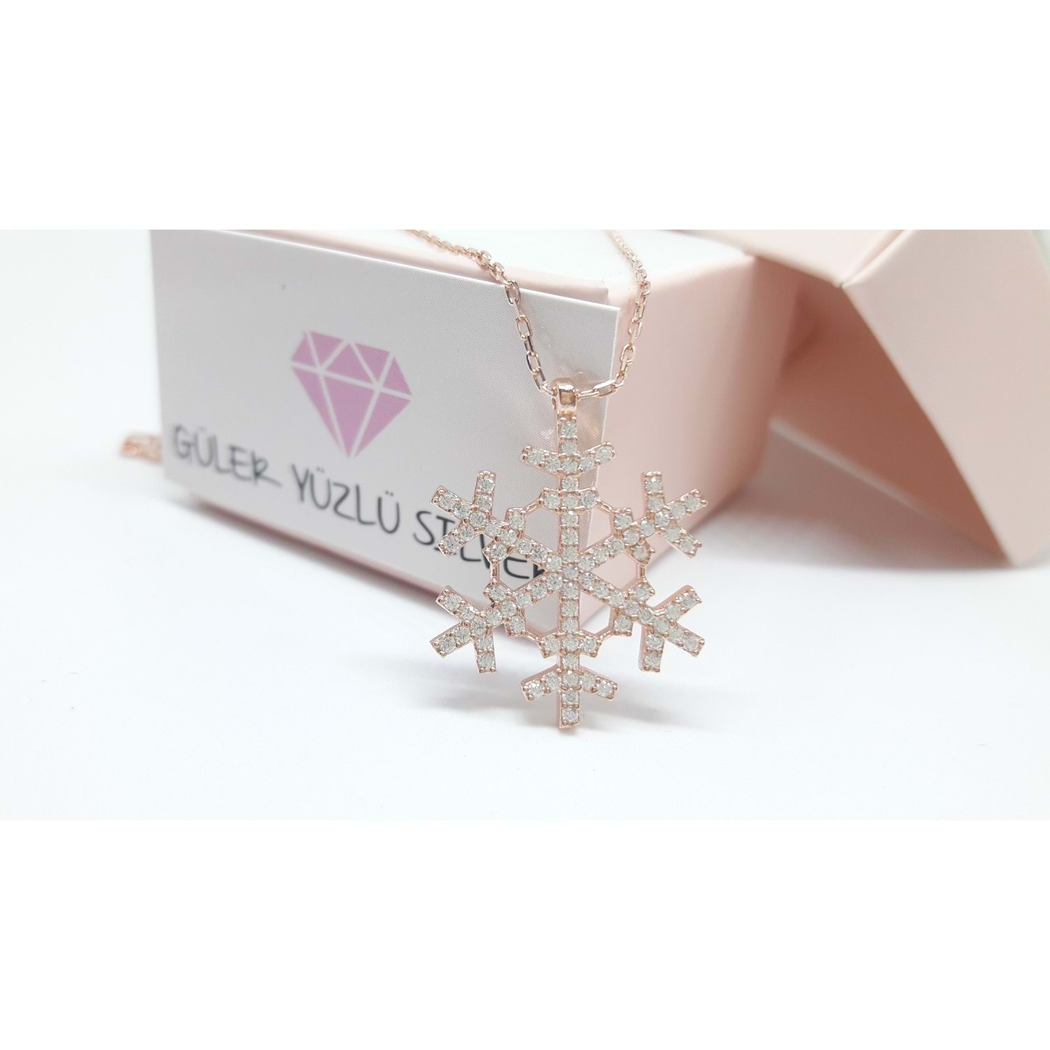 YENİ MODEL KAR TANESİ GÜMÜŞ KOLYE - ROSE ALTIN KAPLAMA