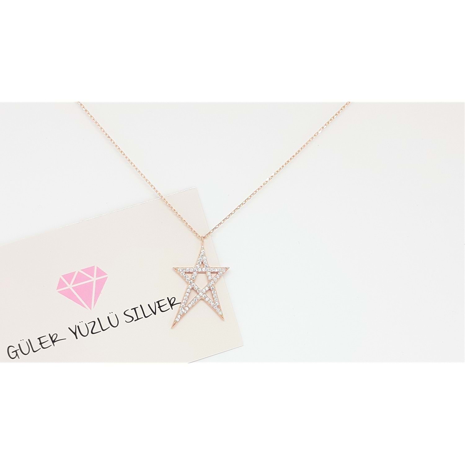 ZİRKON TAŞLI ASİMETRİK GÜMÜŞ YILDIZ KOLYE
