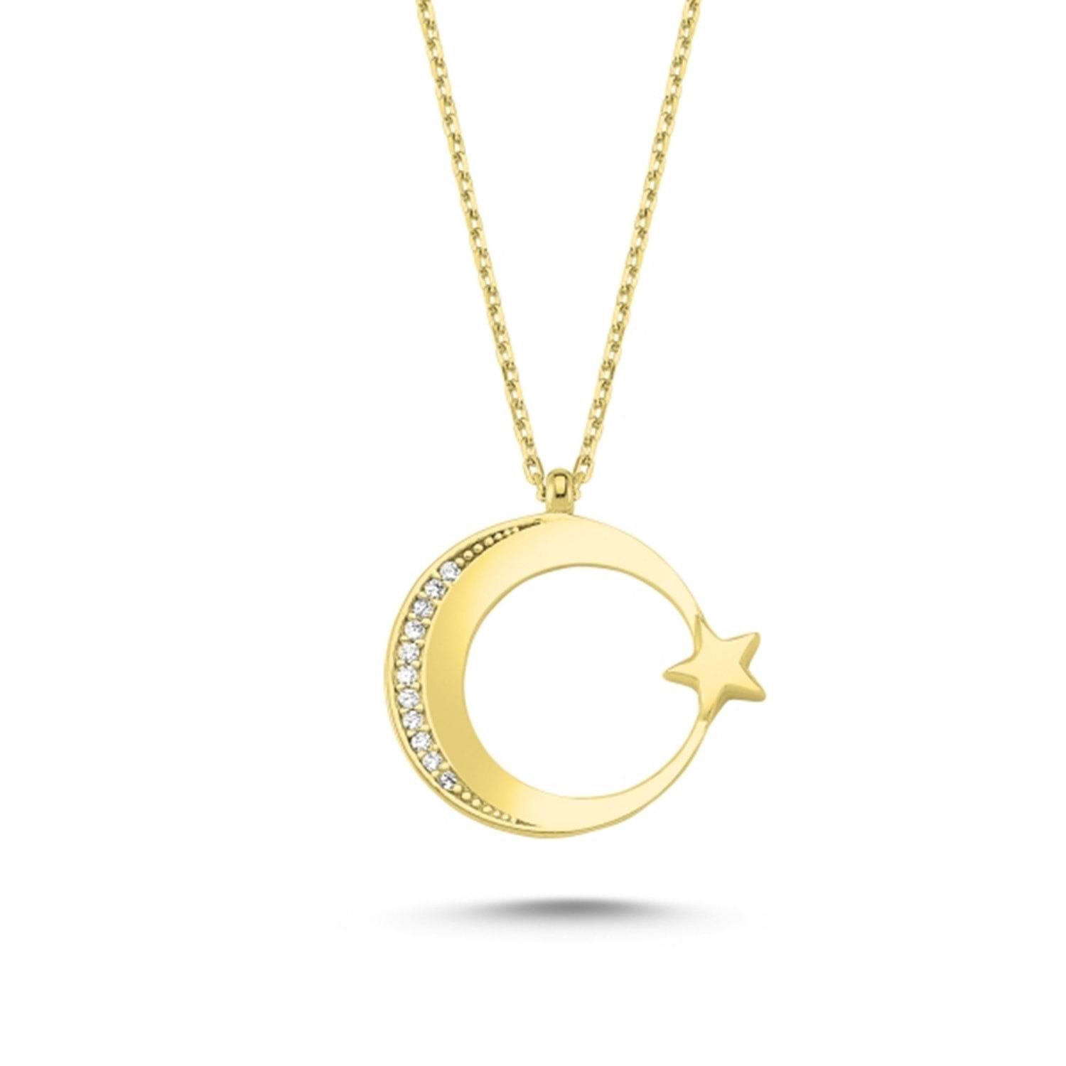 ZİRKON TAŞLI AY YILDIZ GÜMÜŞ KOLYE