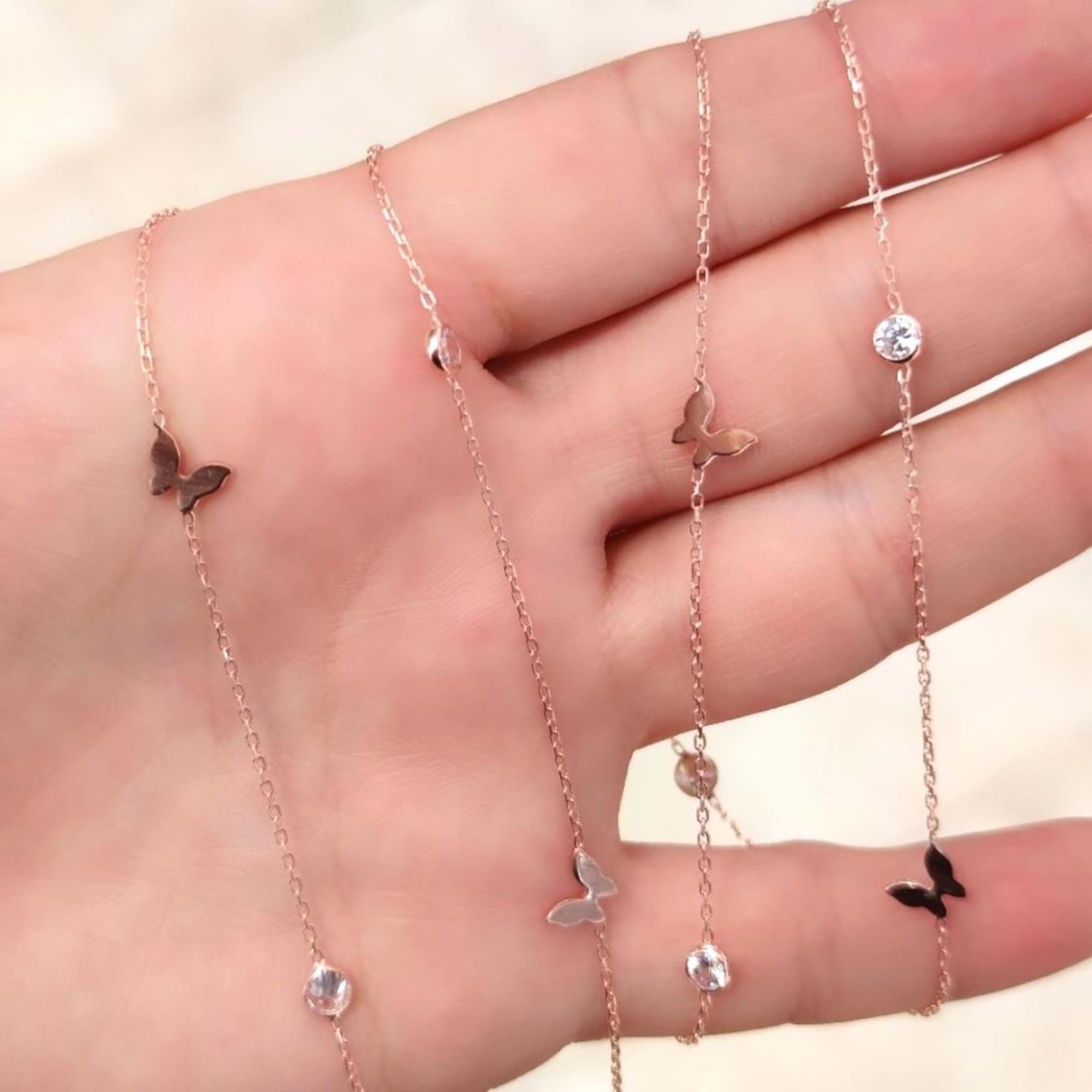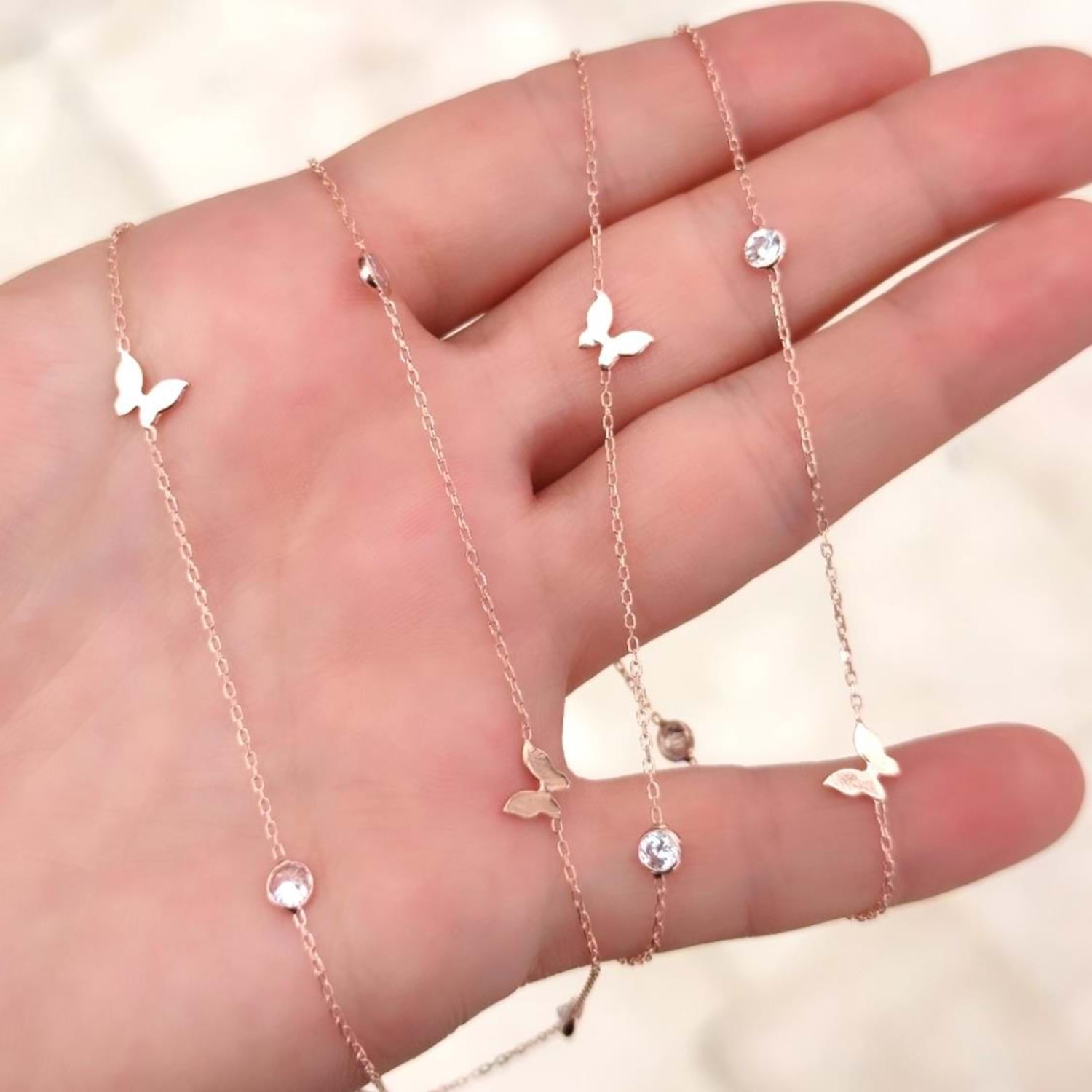 ZİRKON TAŞLI KELEBEK GÜMÜŞ ZİNCİR KOLYE