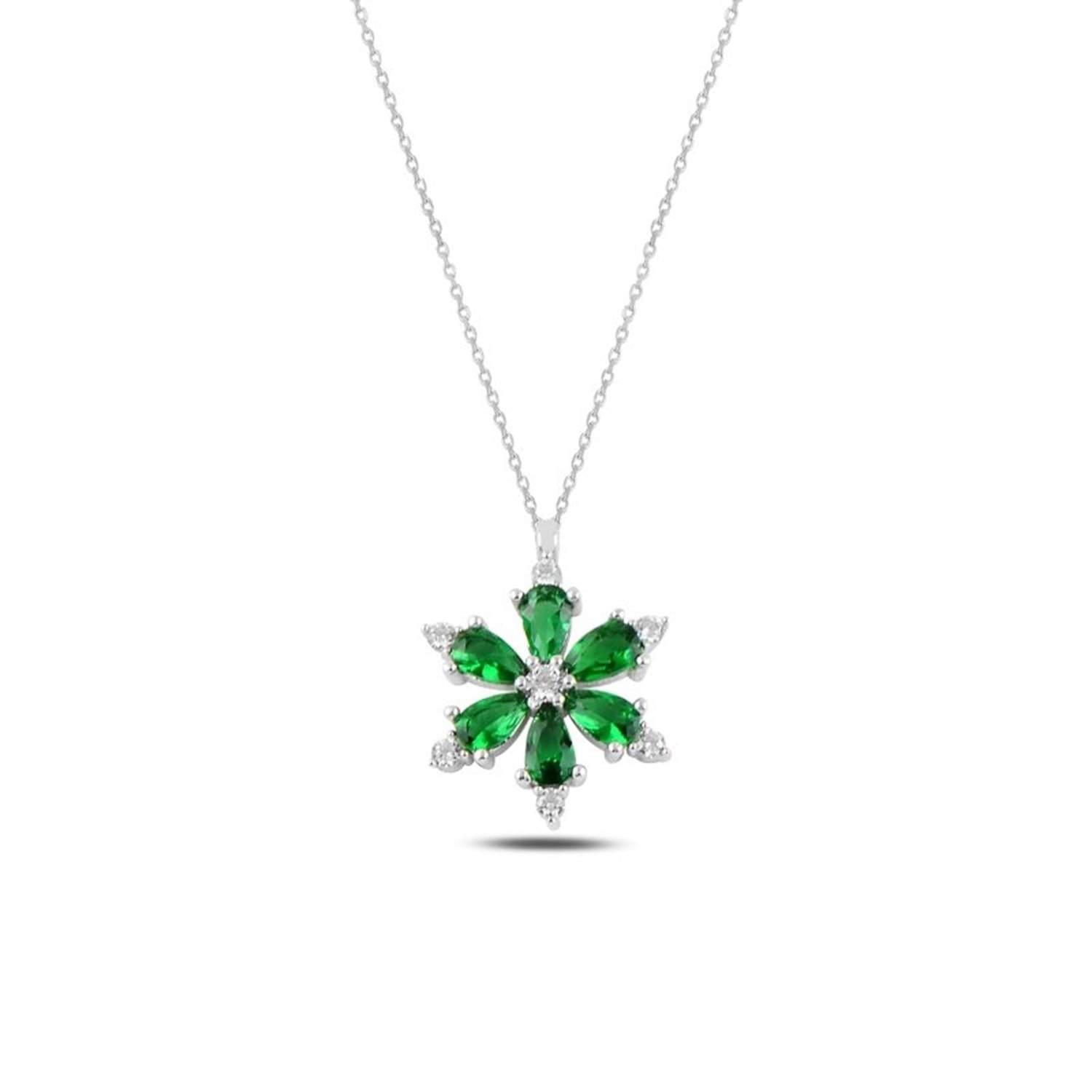 ZÜMRÜT TAŞLI LOTUS GÜMÜŞ KOLYE