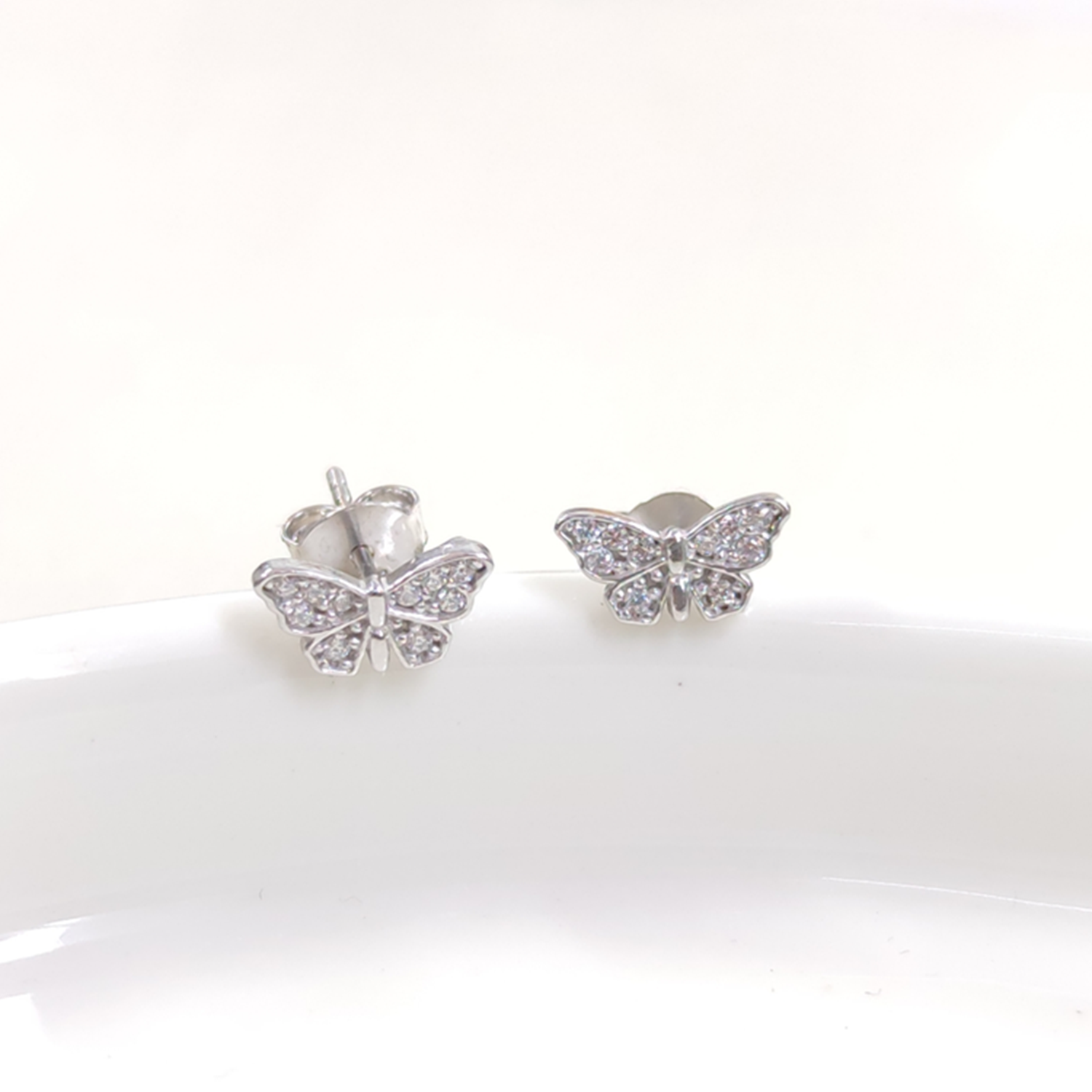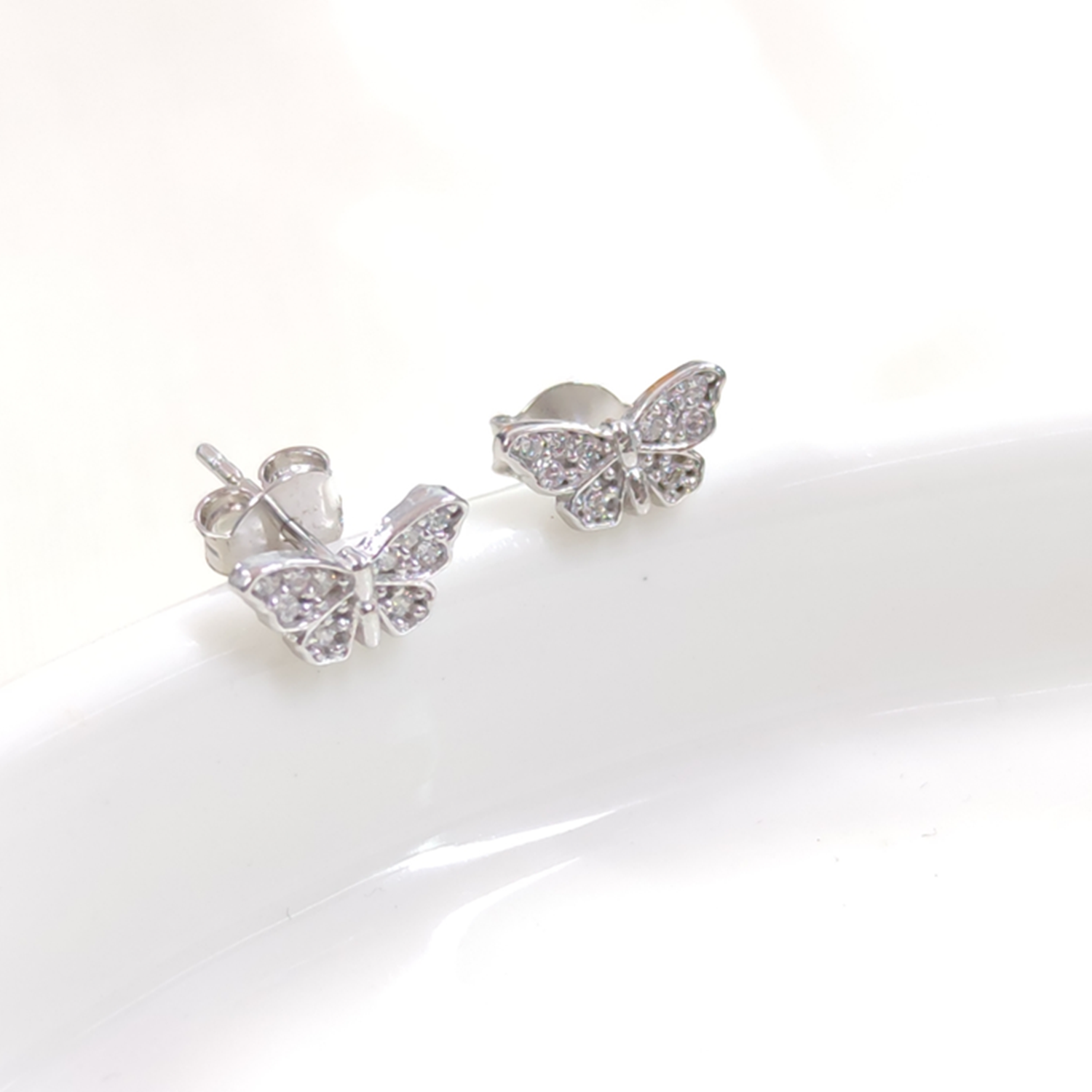 10 MM KELEBEK ÇİVİ GÜMÜŞ KÜPE - RODYUM BEYAZ