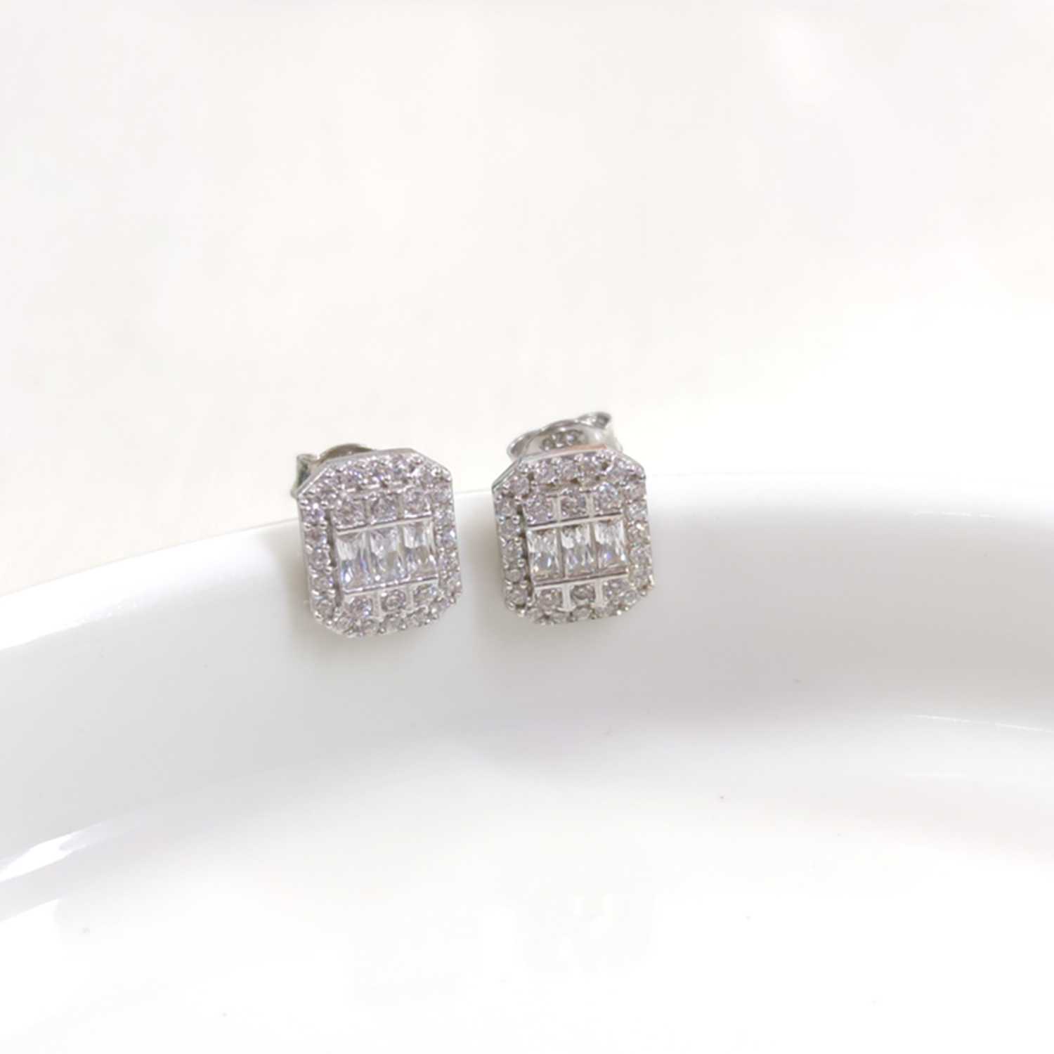 10 MM PIRLANTA MONTÜR BAGET ÇİVİ GÜMÜŞ KÜPE - RODYUM BEYAZ