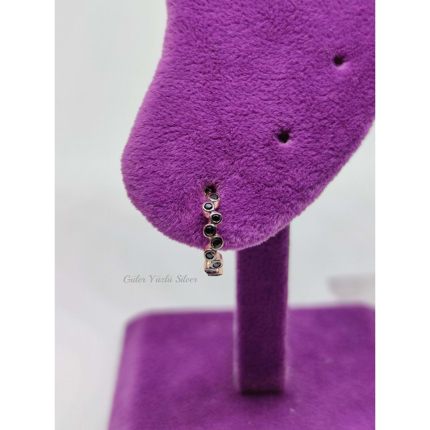 10 MM SİYAH TAŞLI ÇITIR GÜMÜŞ HALKA KÜPE