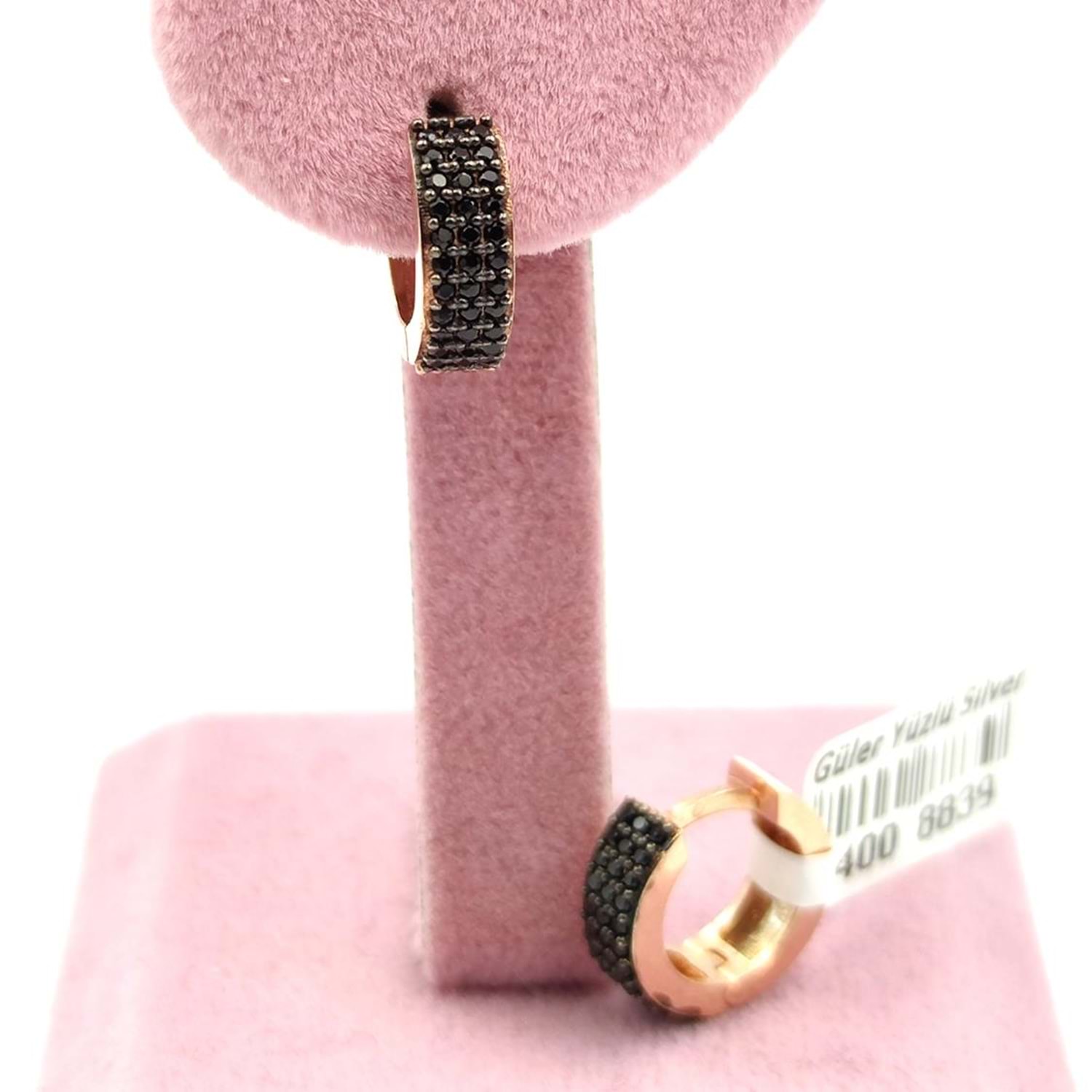 10 MM ÜÇ SIRA SİYAH TAŞLI HALKA GÜMÜŞ KÜPE