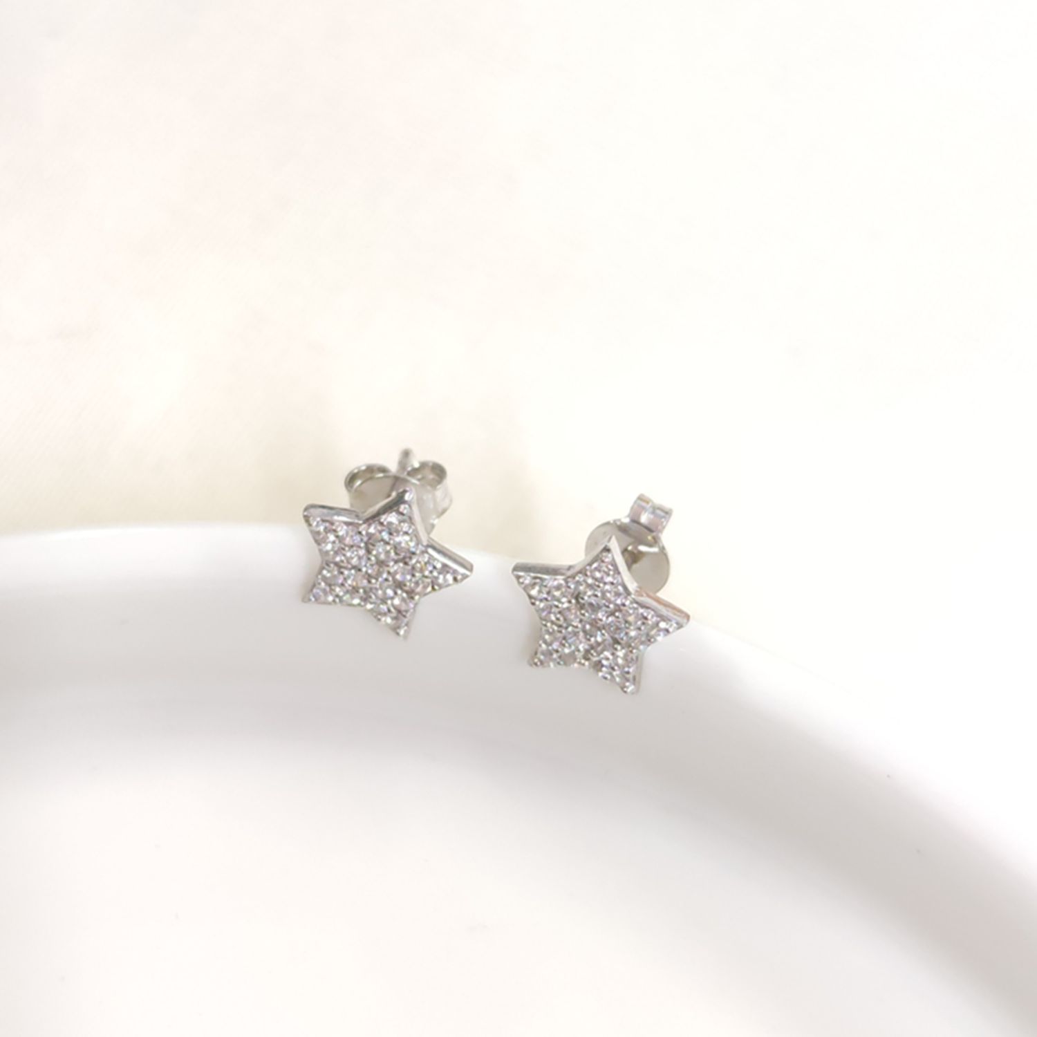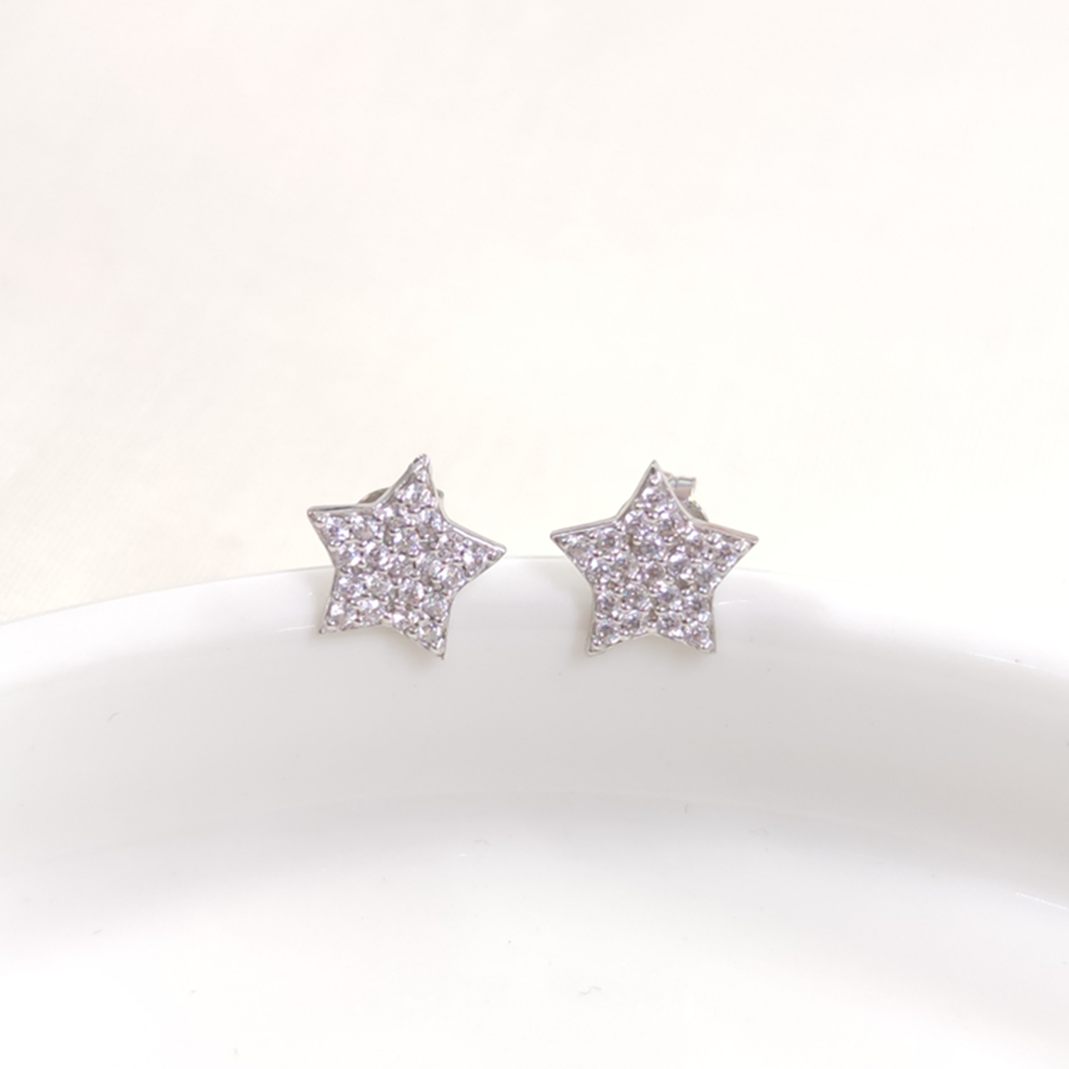 10 MM YILDIZ ÇİVİ GÜMÜŞ KÜPE - RODYUM BEYAZ