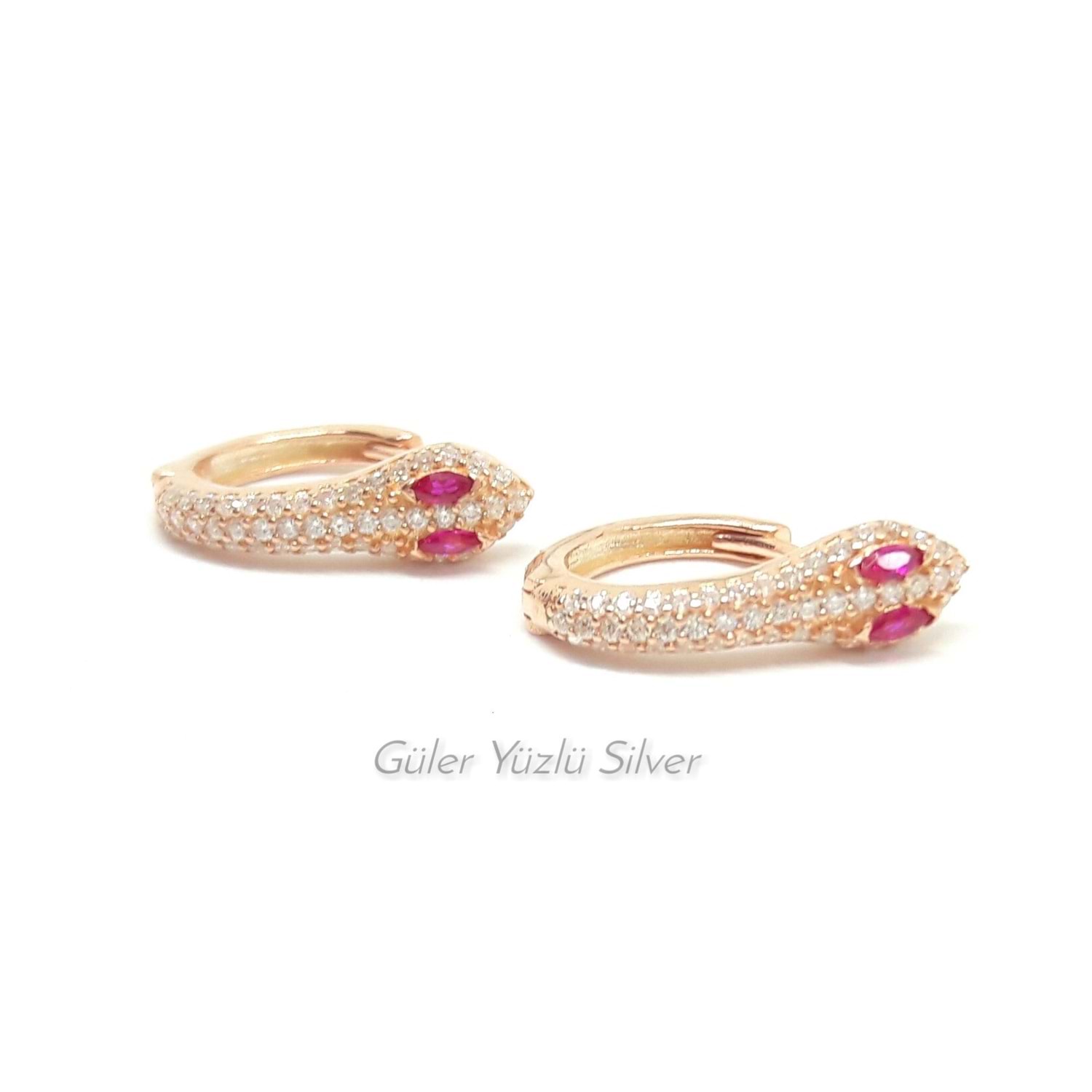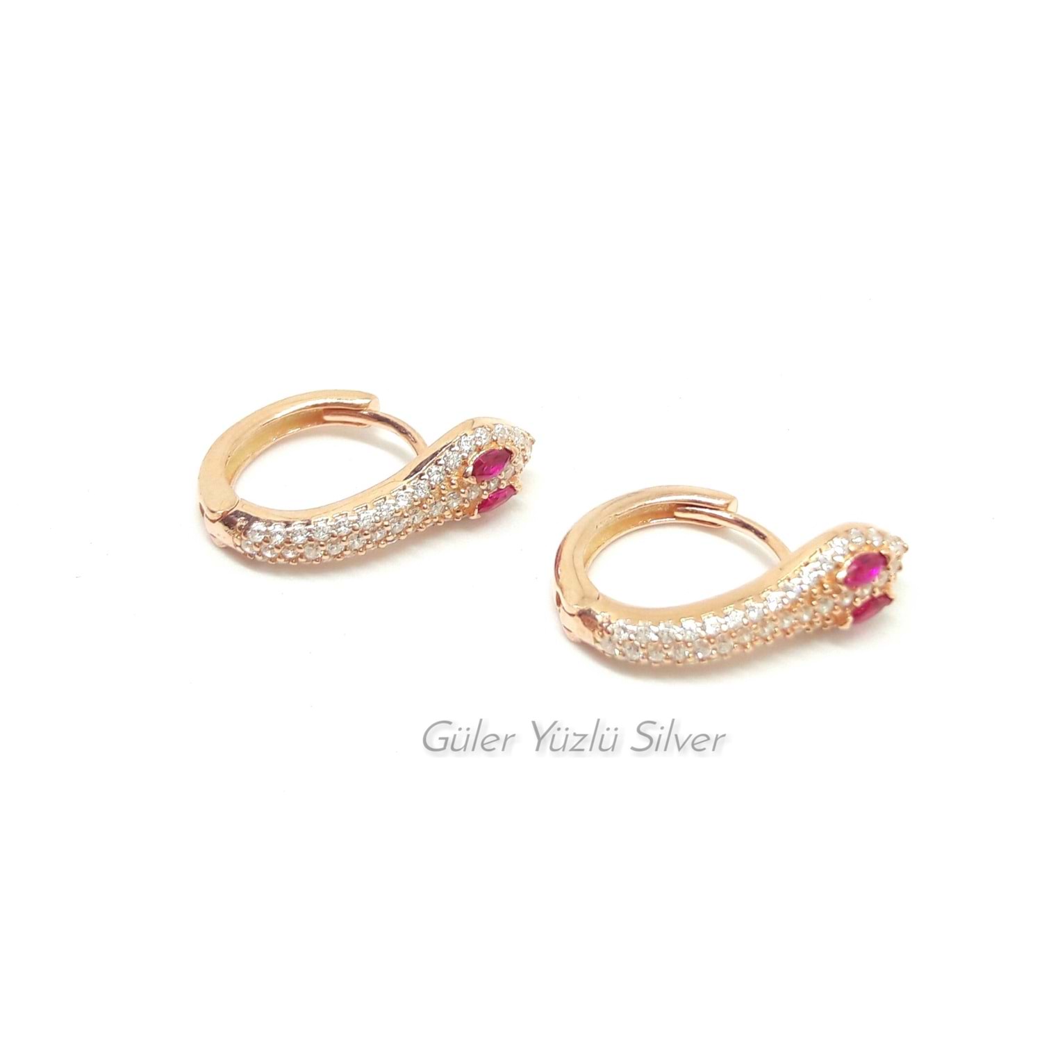 11 MM PEMBE TAŞLI YILAN HALKA GÜMÜŞ KÜPE
