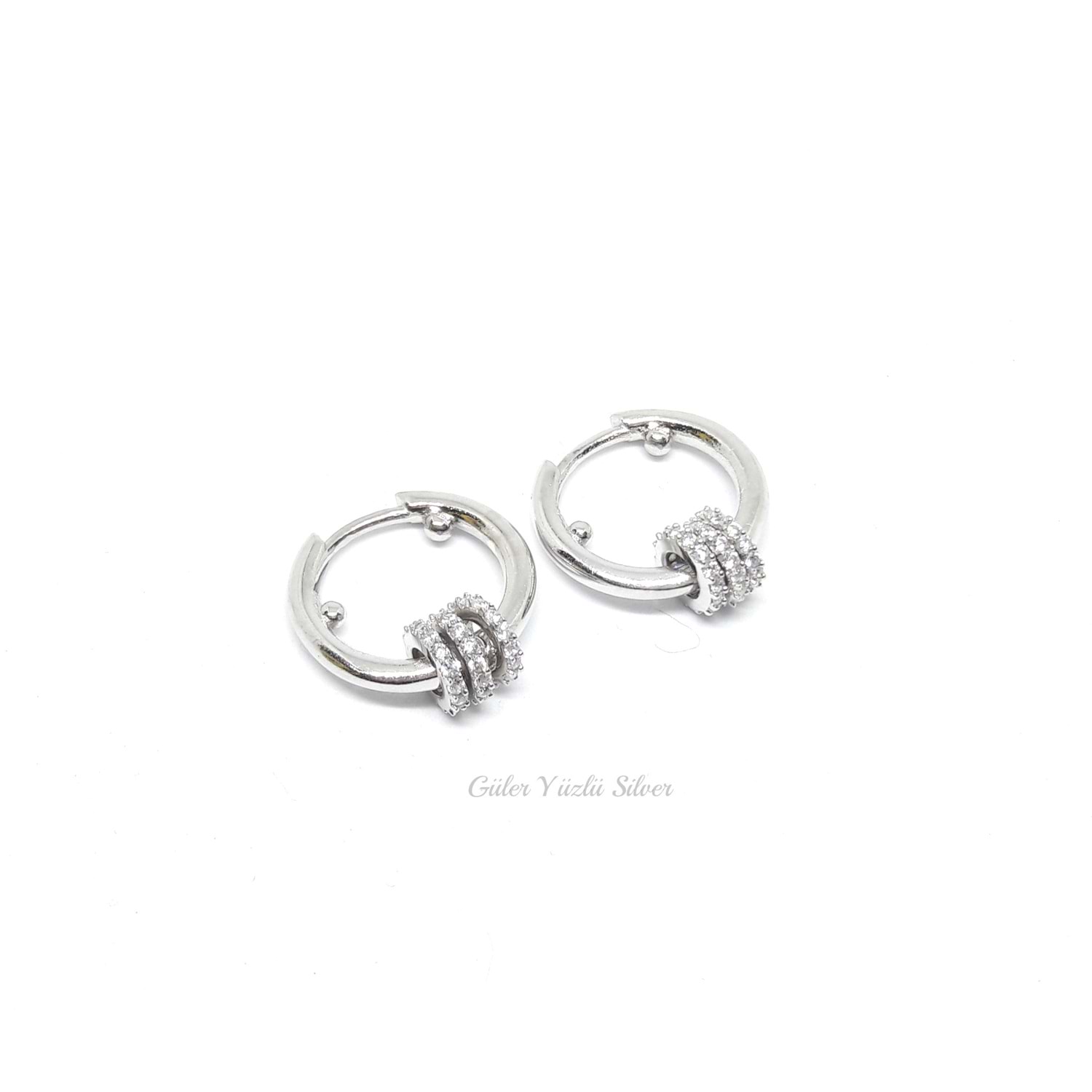 12 MM 3 HALKALI GÜMÜŞ HALKA KÜPE - RODYUM KAPLAMA (BEYAZ)