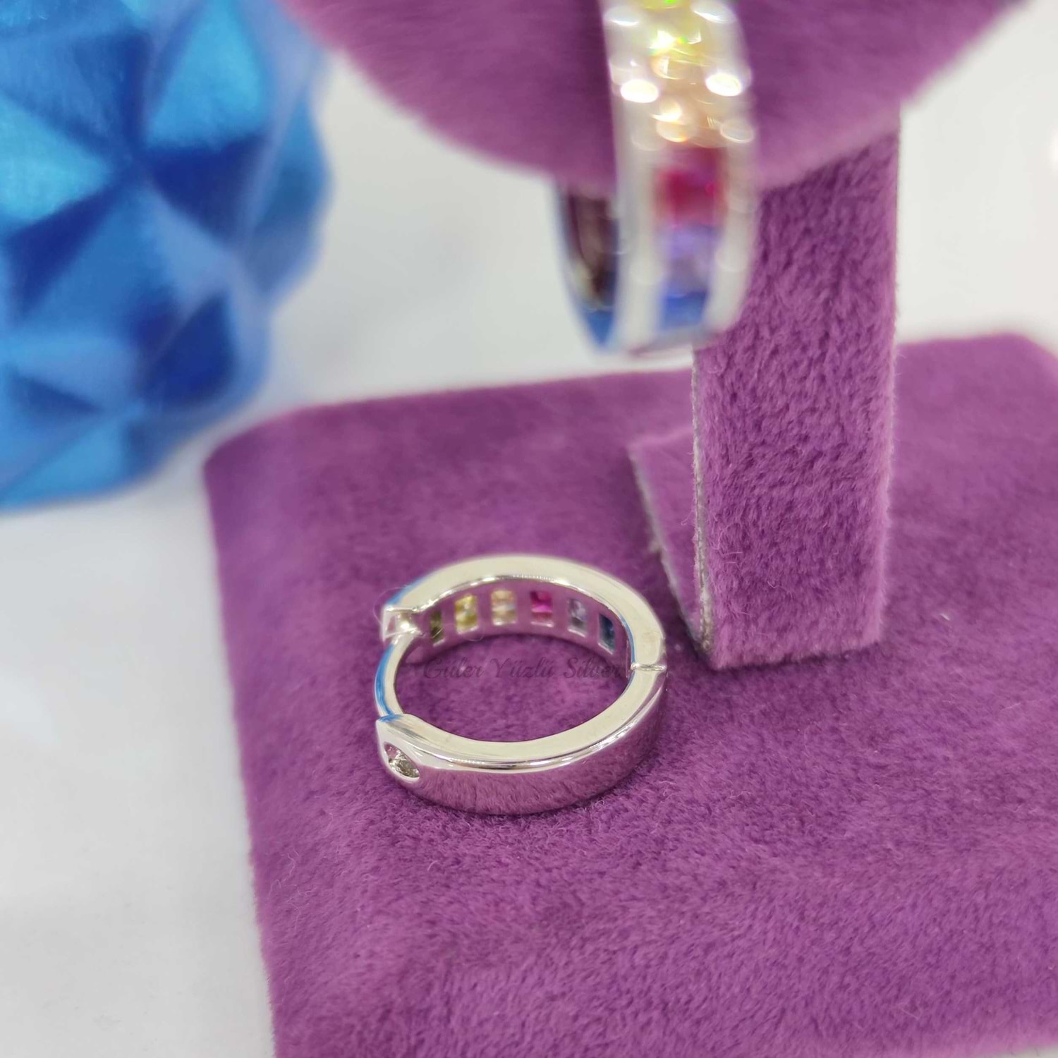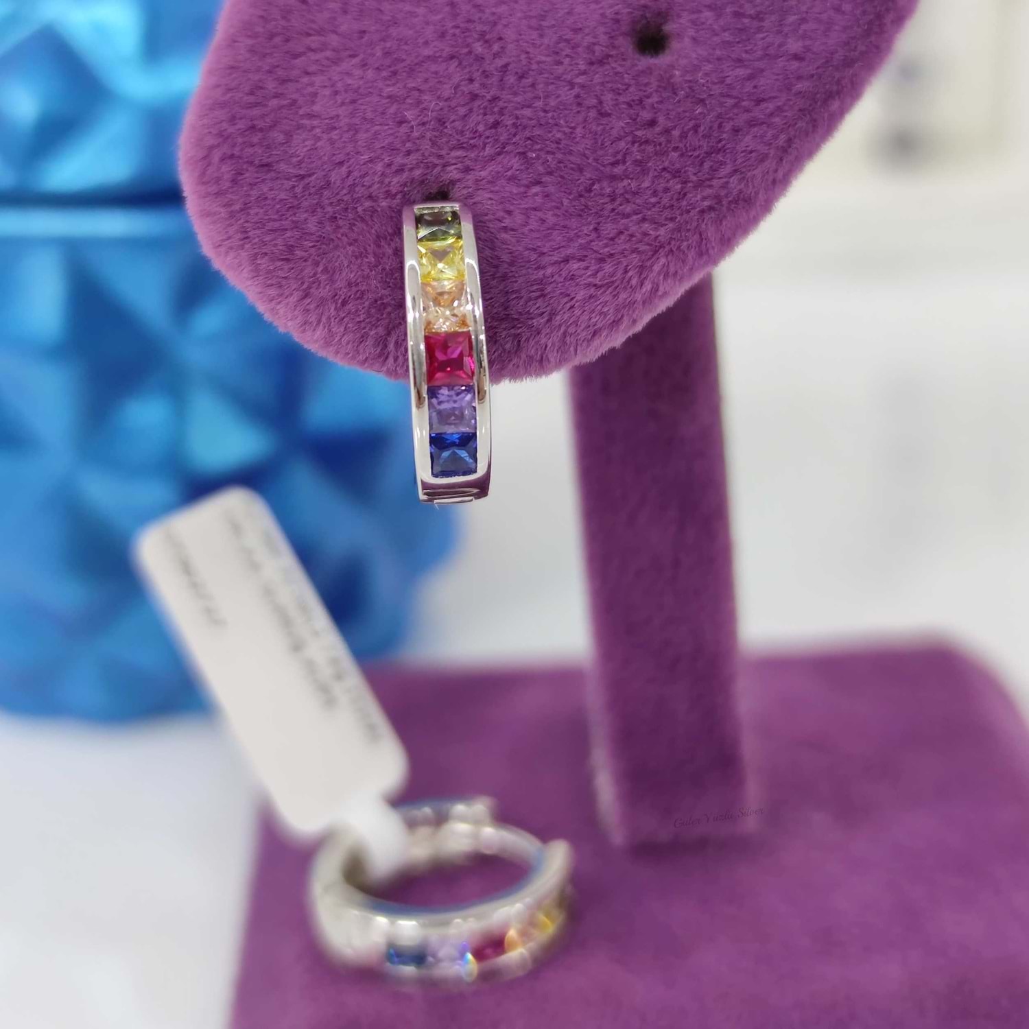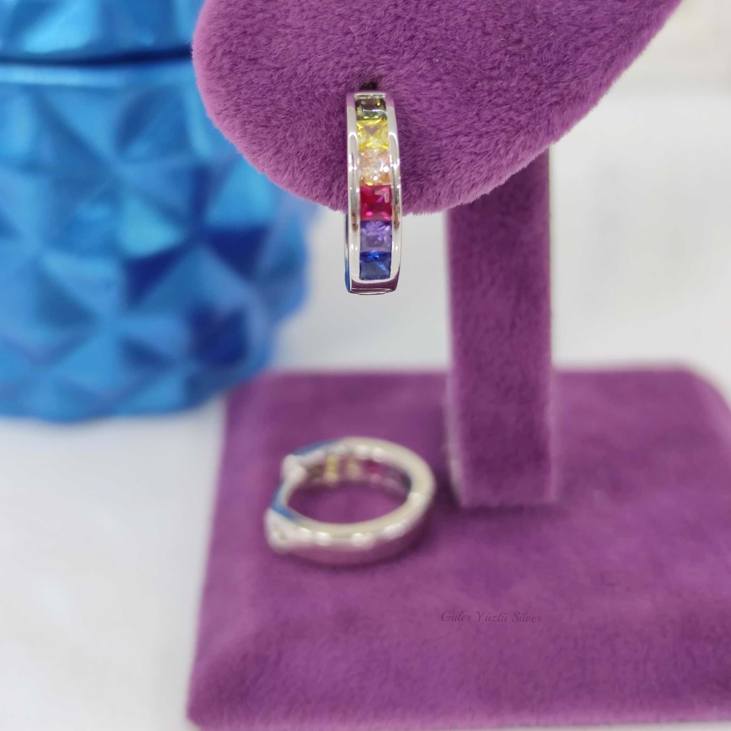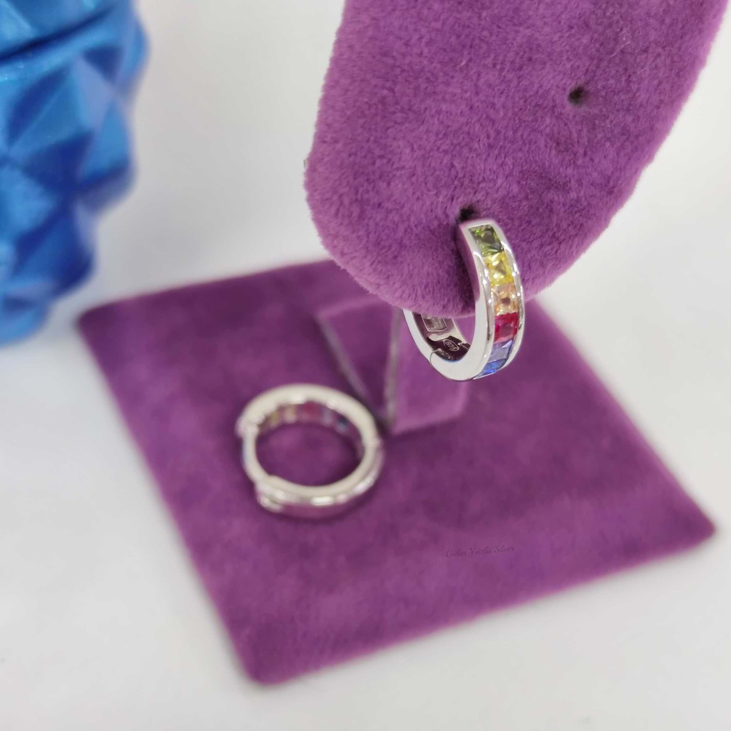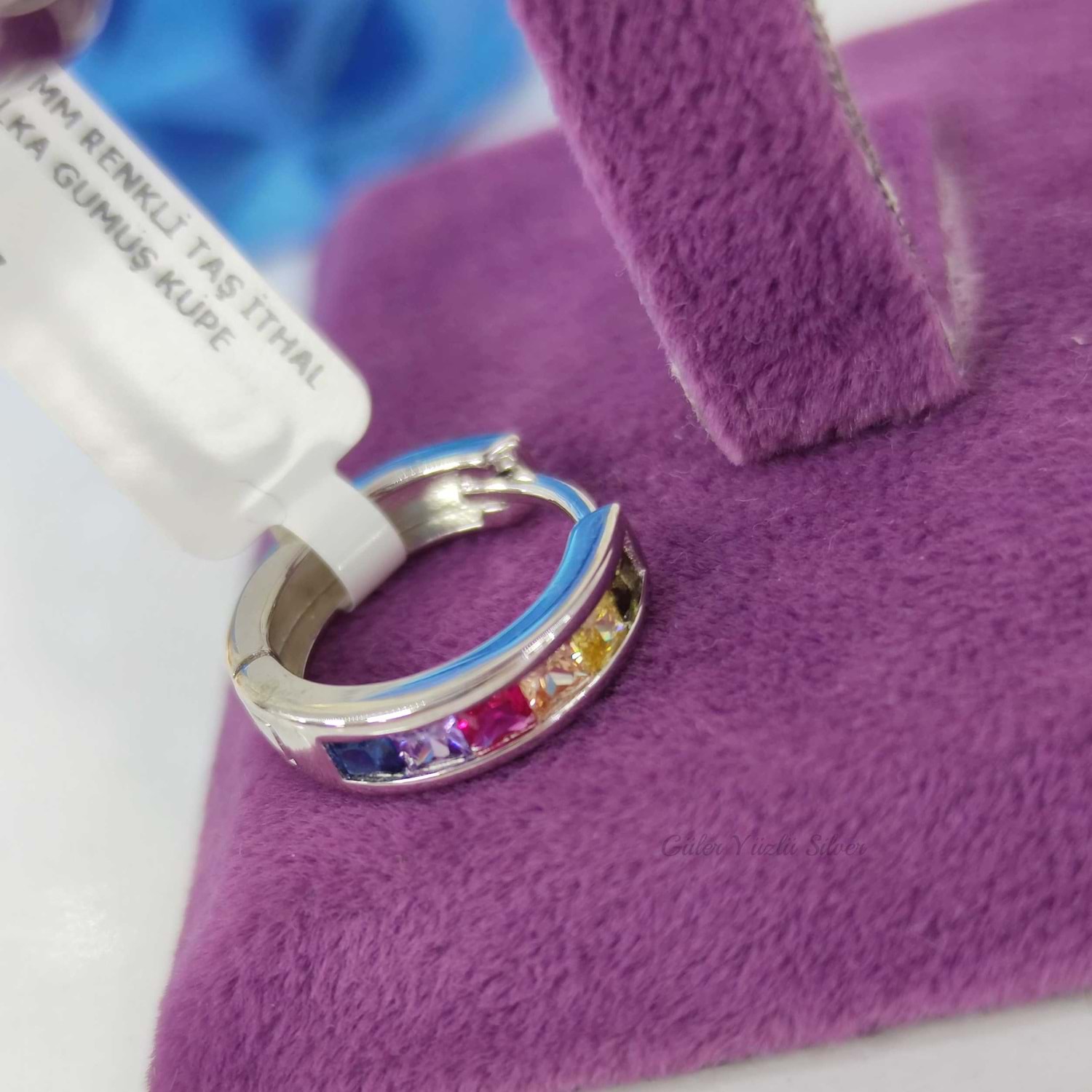 925 AYAR GÜMÜŞ 1,20 CM HALKA ÇAPI RENKLİ MİX KARIŞIK ZİRKON TAŞ İTHAL HALKA KÜPE ORTALAMA GRAM : 4,10
