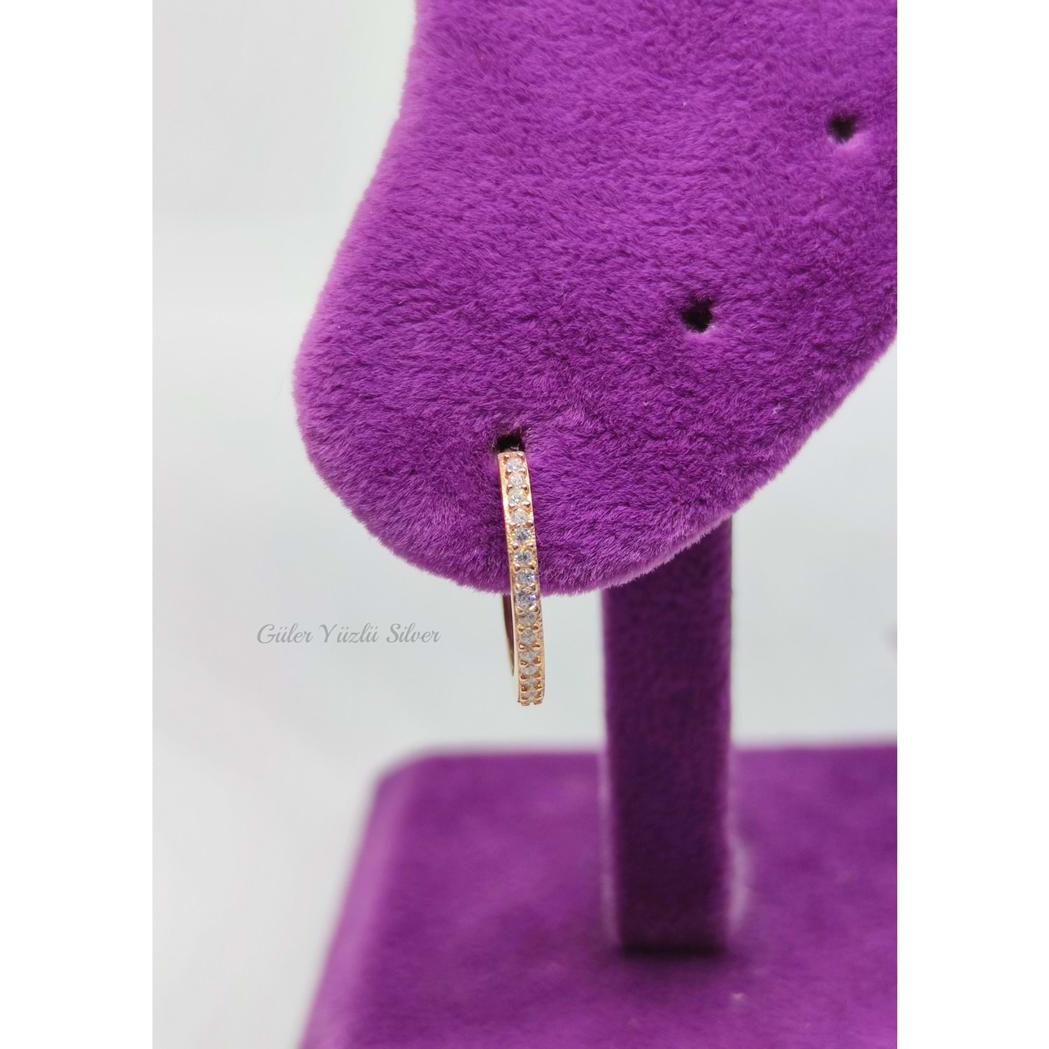 12 MM ZİRKON TAŞLI TEK SIRA HALKA GÜMÜŞ KÜPE - ROSE ALTIN KAPLAMA