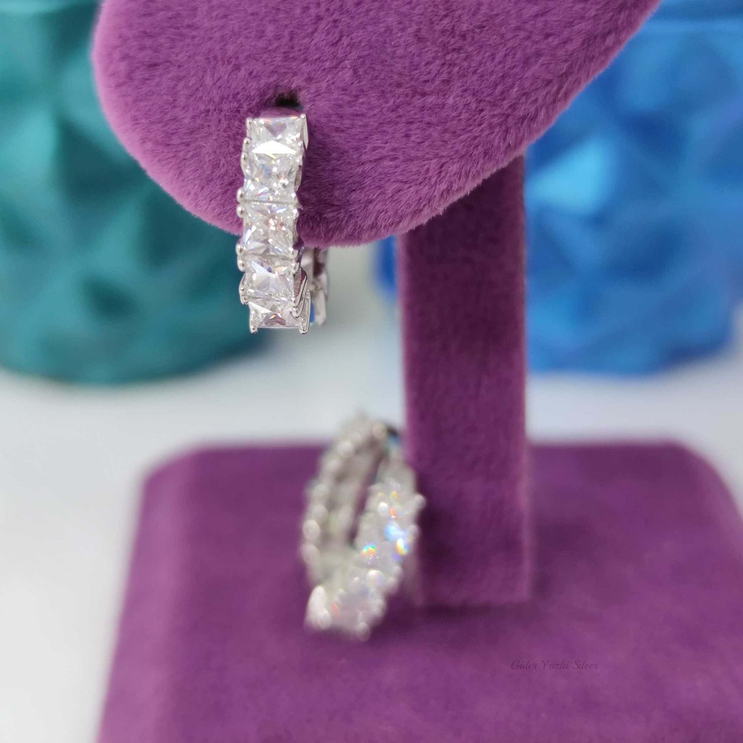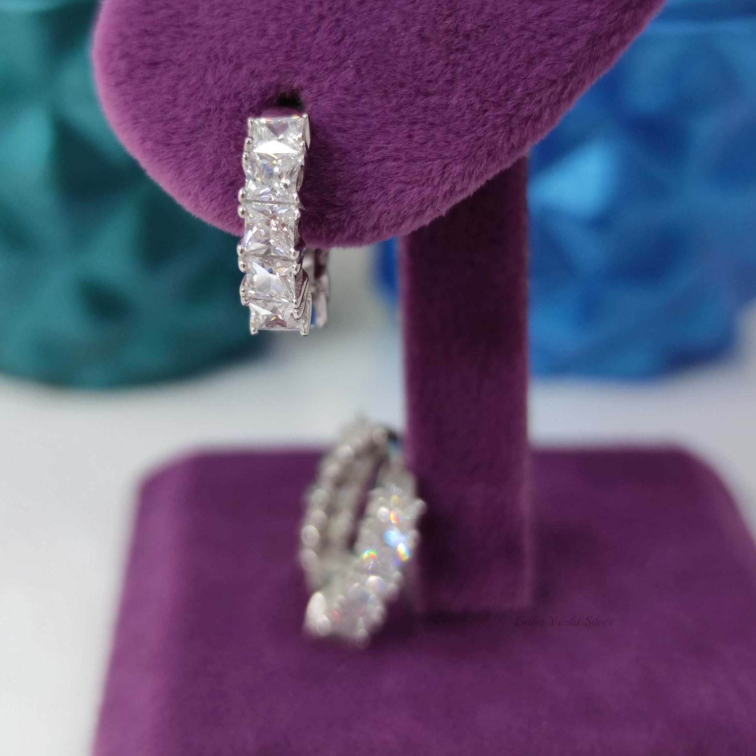 925 AYAR GÜMÜŞ ÇİFT FİYATIDIR. İTHAL ZİRKON TAŞLI HALKA KÜPE ORTALAMA AĞIRLIK : 4,28 HALKA ÇAPI : 1,3 CM