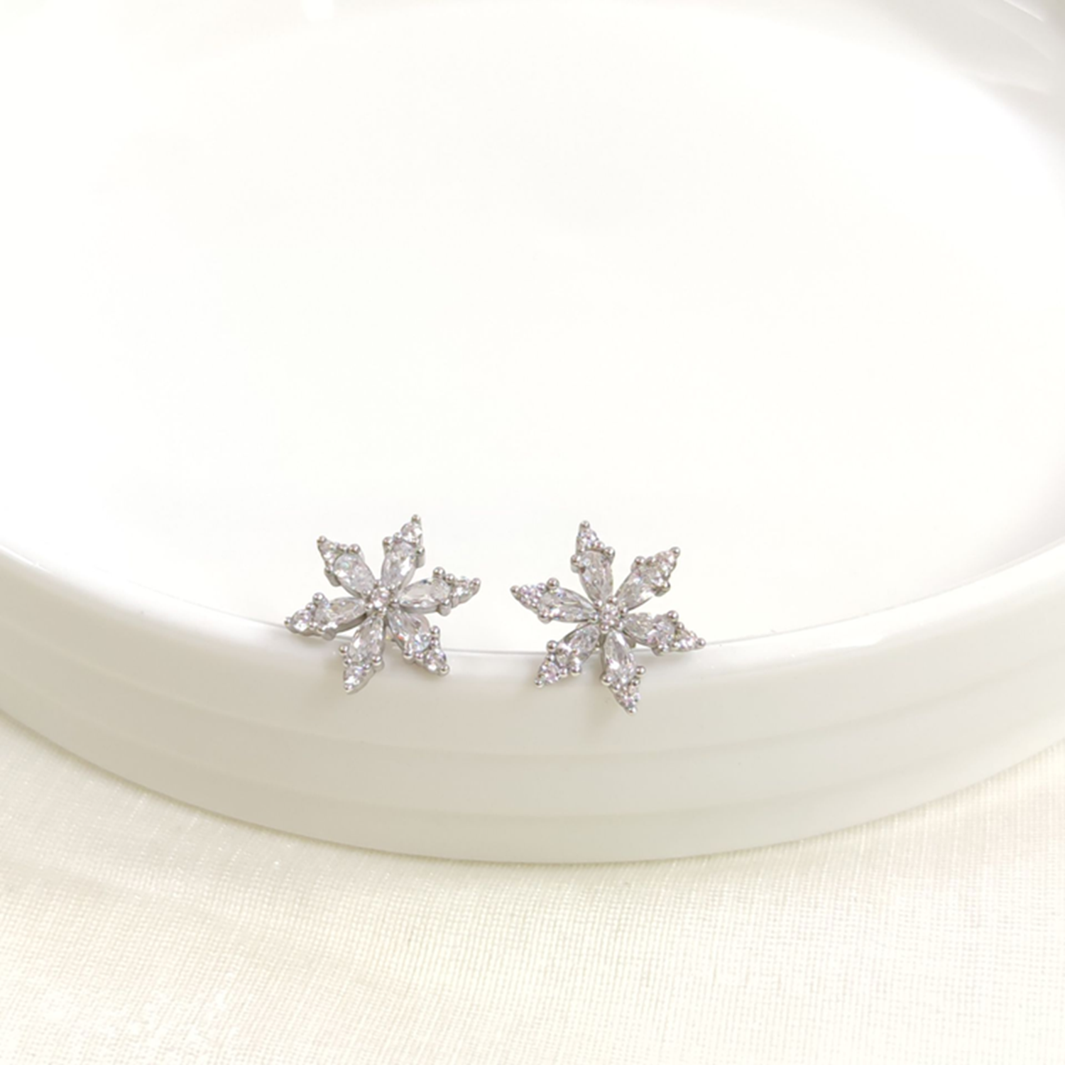 14 MM ZİRKON TAŞLI LOTUS ÇİVİ GÜMÜŞ KÜPE - RODYUM BEYAZ