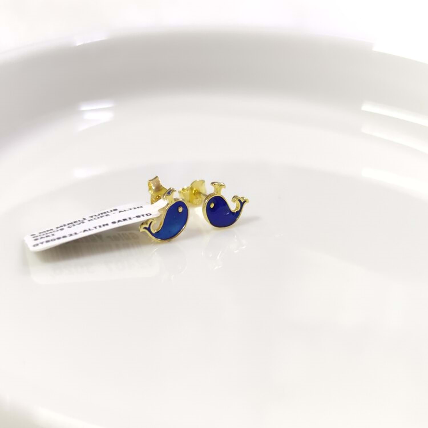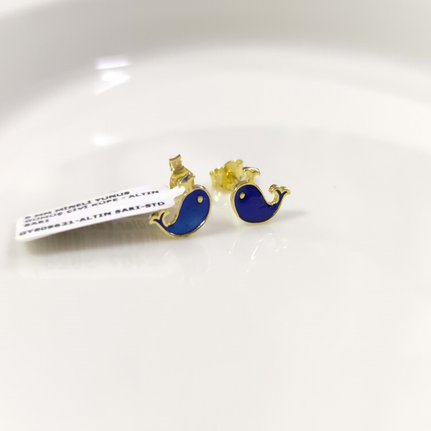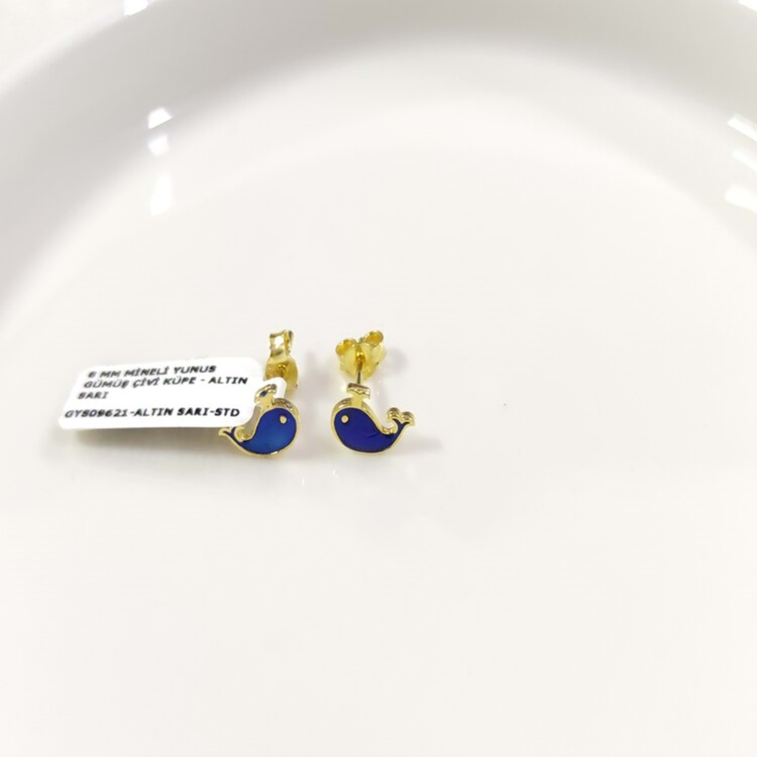 8 MM MİNELİ YUNUS GÜMÜŞ ÇİVİ KÜPE - ALTIN SARI