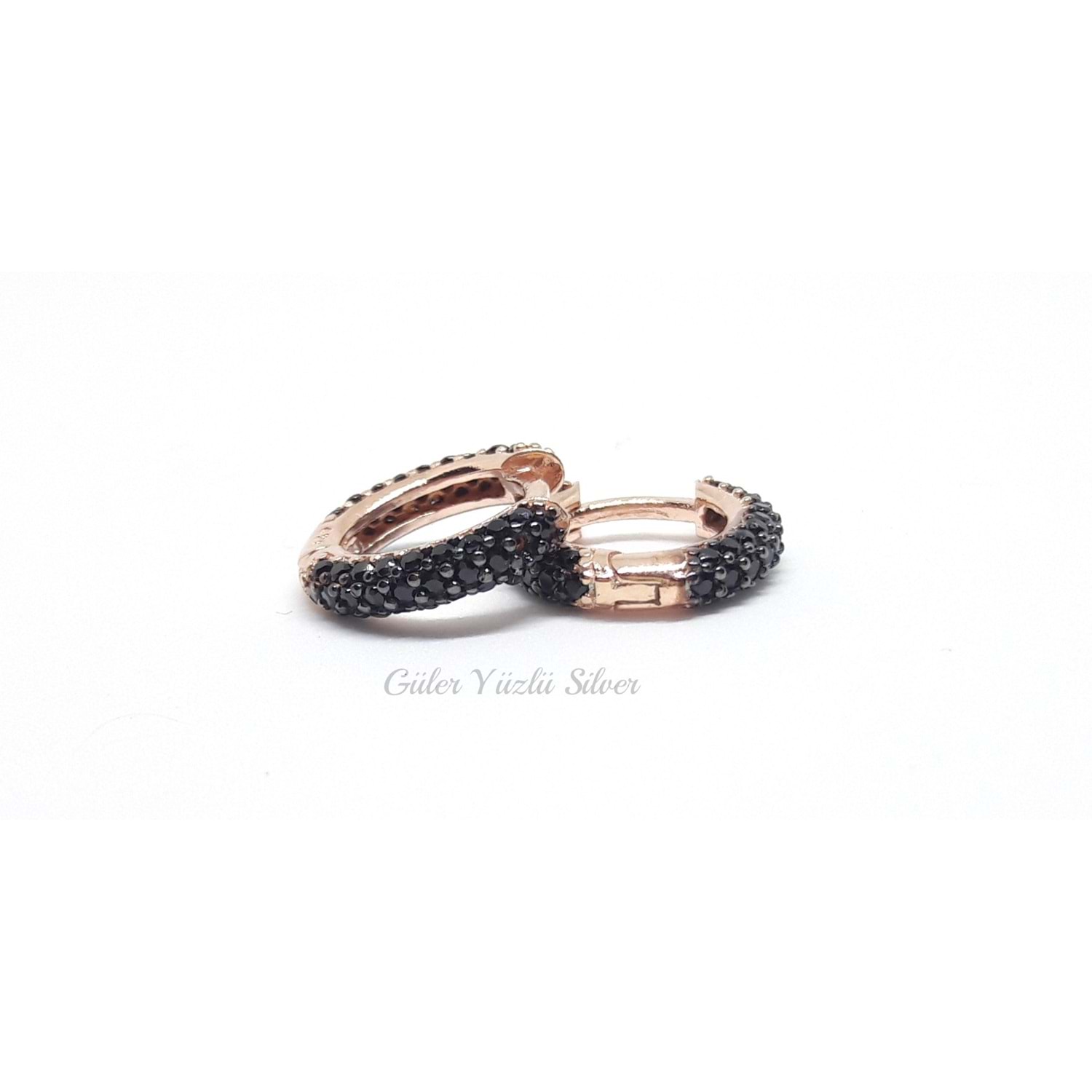 8 MM SİYAH FULL TAŞ HALKA GÜMÜŞ KÜPE
