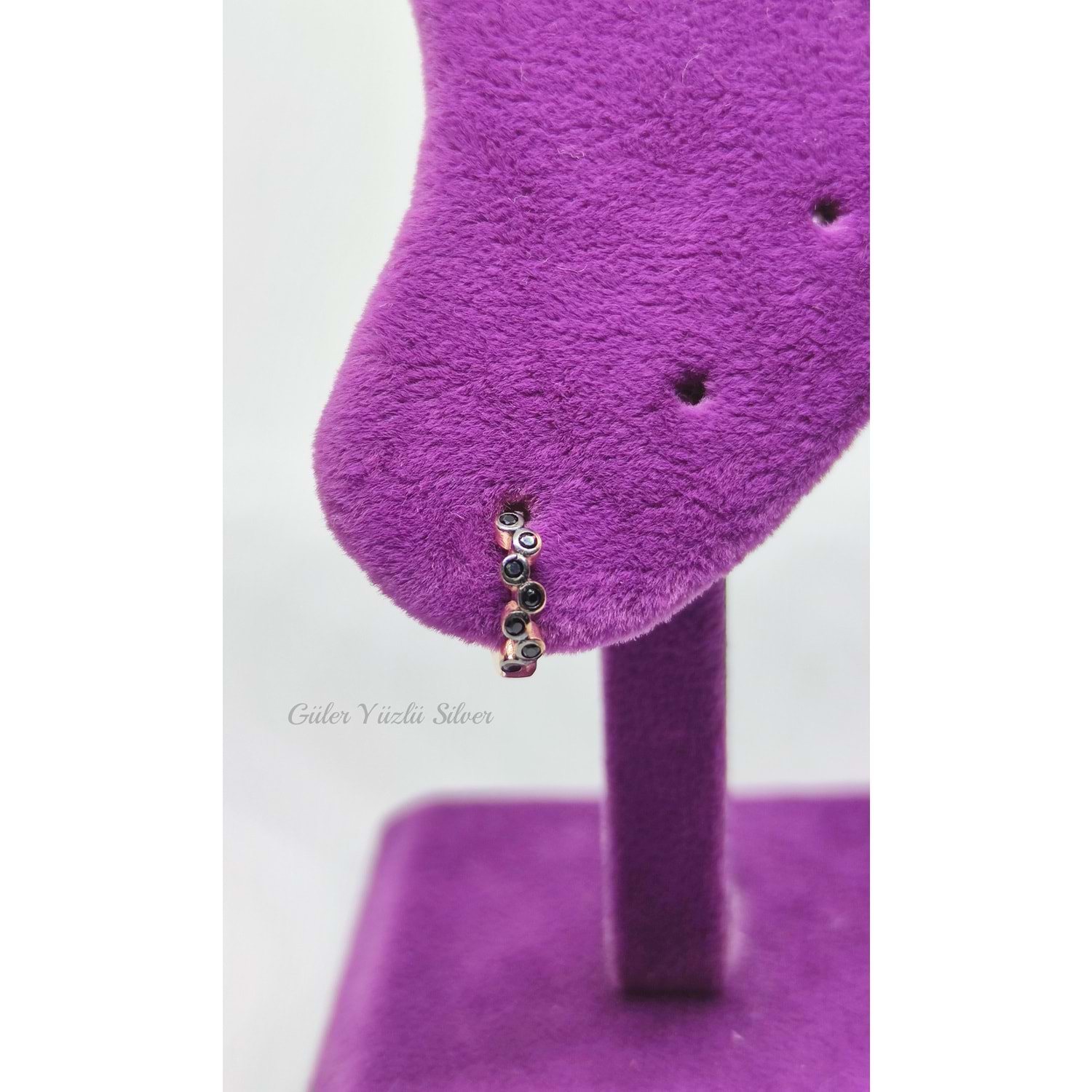8 MM SİYAH ZİRKON TAŞLI ÇITIR GÜMÜŞ HALKA KÜPE