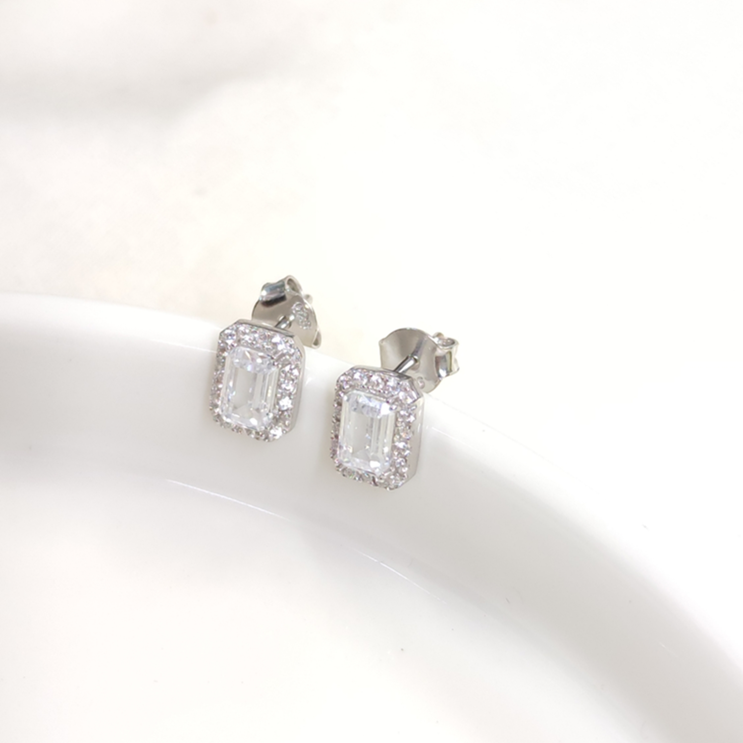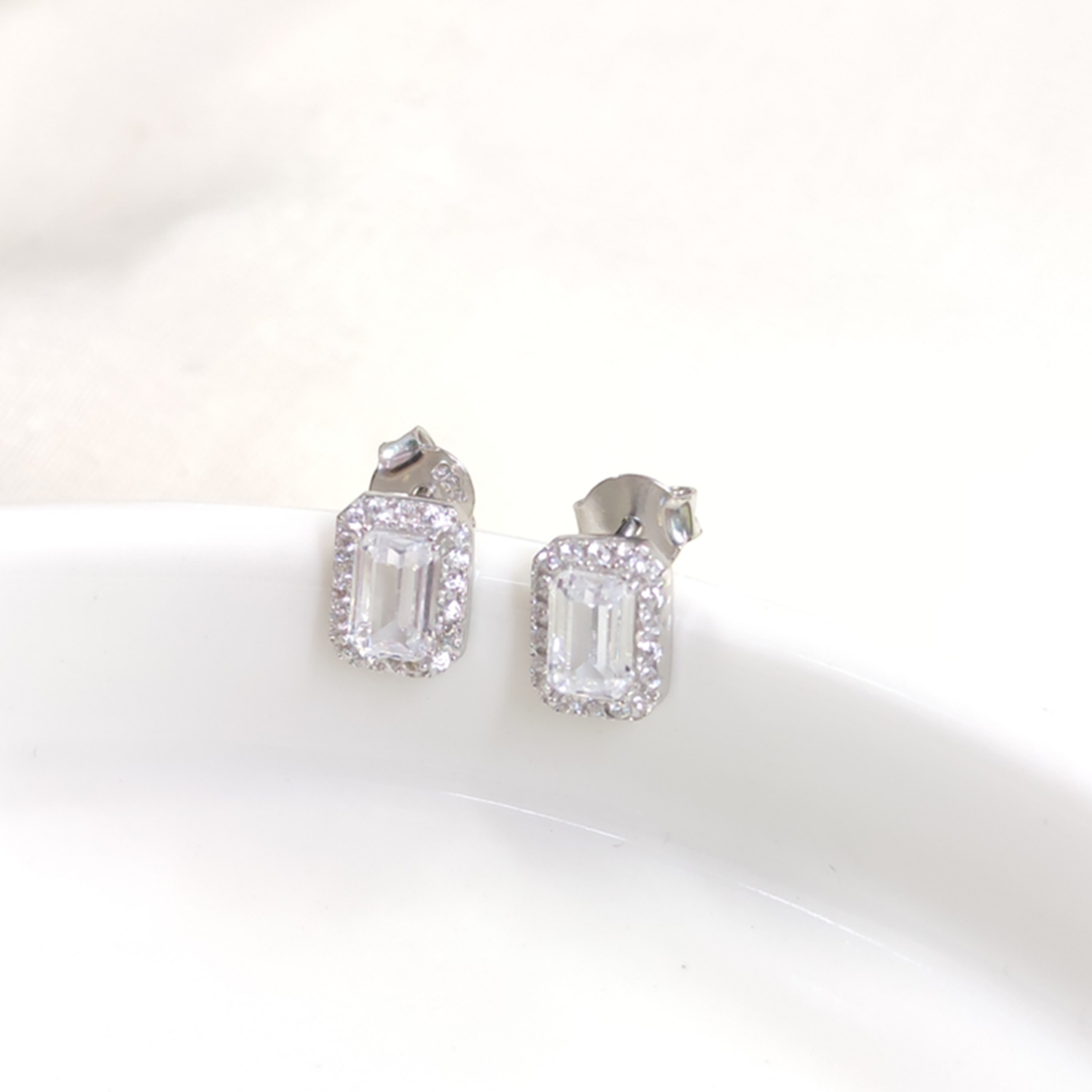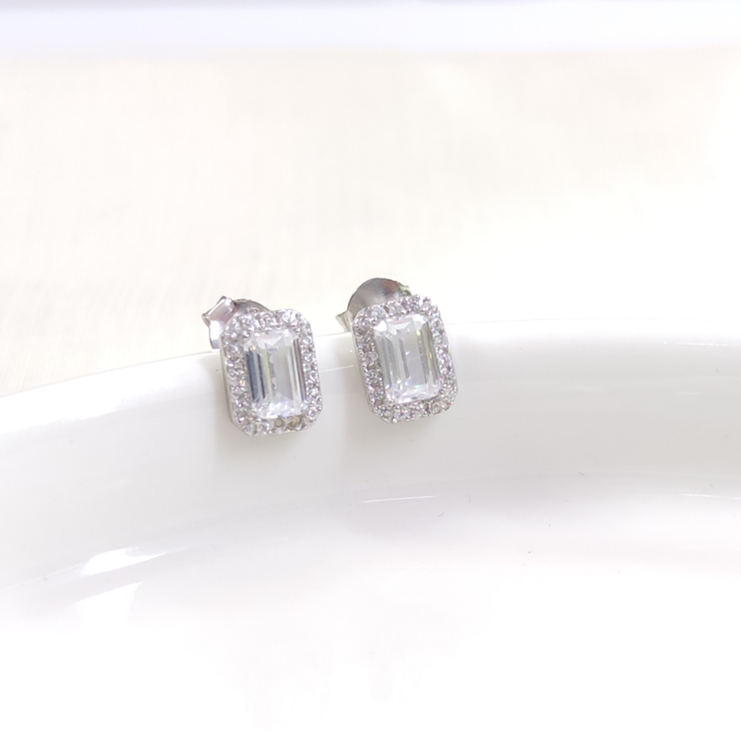 9 MM ZİRKON TAŞLI MİNİ BAGET ÇİVİ GÜMÜŞ KÜPE - RODYUM BEYAZ