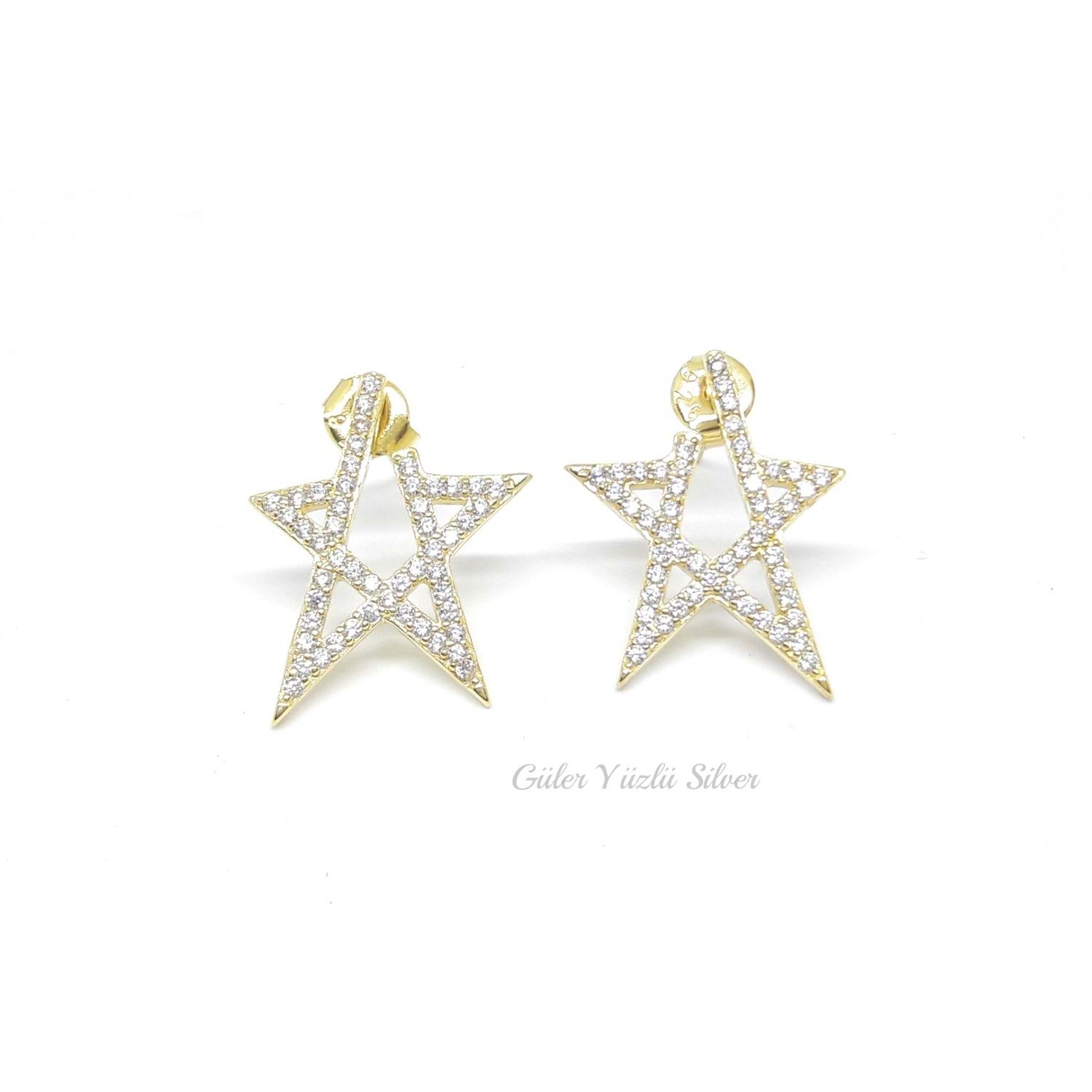 ASİMETRİK YILDIZ GÜMÜŞ KÜPE - ROSE ALTIN KAPLAMA