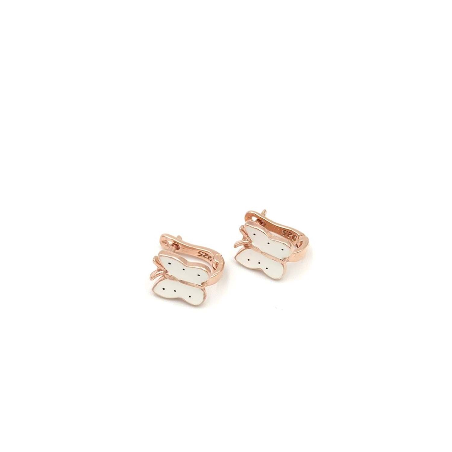 BEYAZ MİNELİ KELEBEK ÇOCUK GÜMÜŞ KÜPE - ROSE BAKIR
