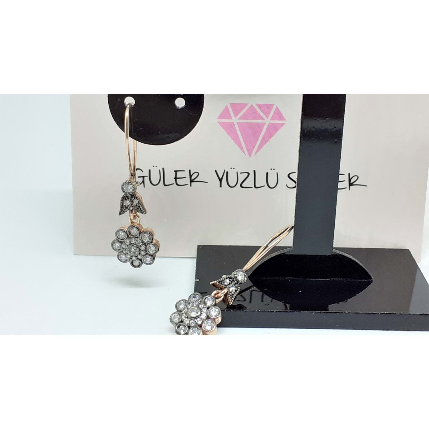 ÇİÇEK ELMAS MONTÜRLÜ SALLANTILI GÜMÜŞ KÜPE