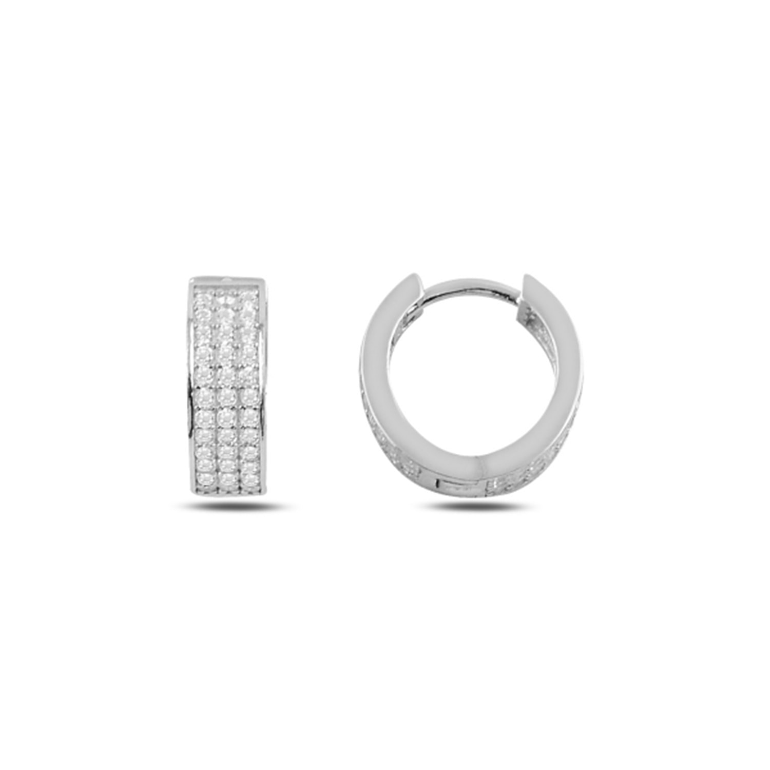 ÇİFT TARAF 3 SIRA ZİRKON TAŞLI 15 MM HALKA GÜMÜŞ KÜPE