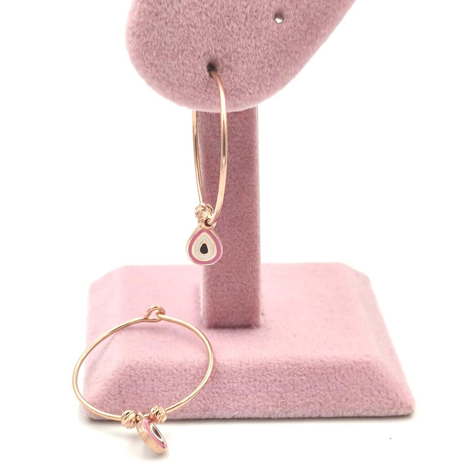DAMLA PEMBE MİNELİ HALKA GÜMÜŞ KÜPE