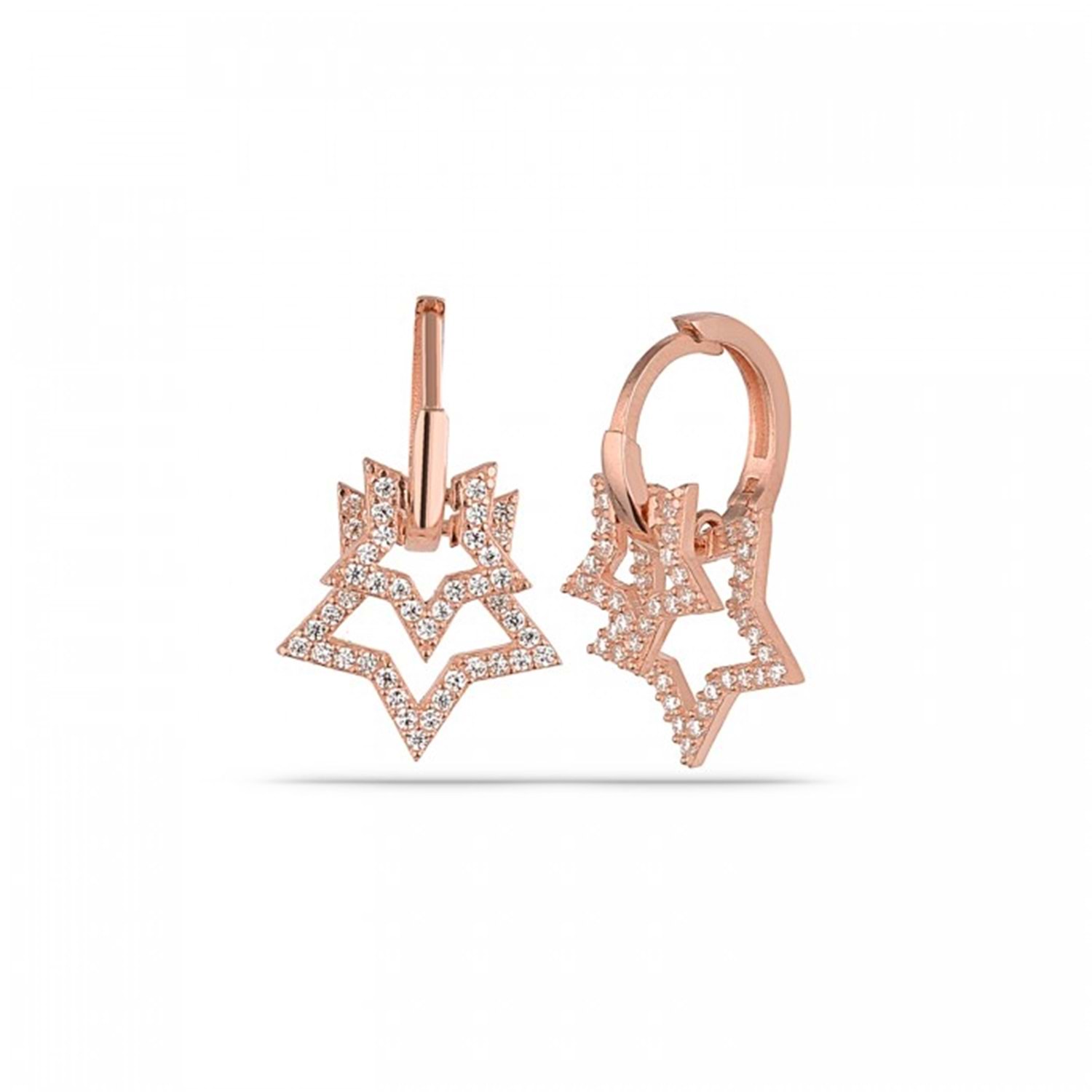 HALKA İKİLİ YILDIZ GÜMÜŞ KÜPE - ROSE ALTIN KAPLAMA