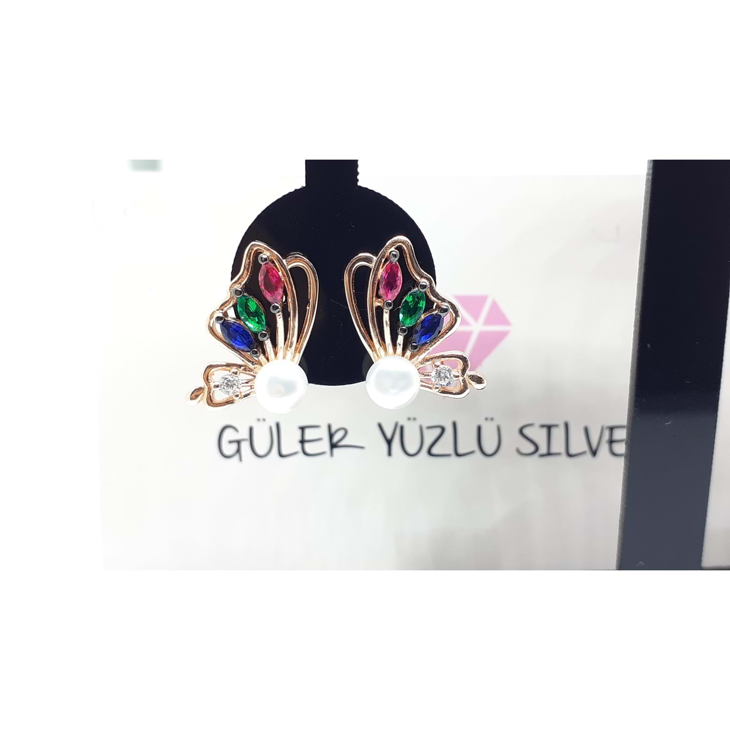 İNCİLİ KELEBEK GÜMÜŞ KÜPE