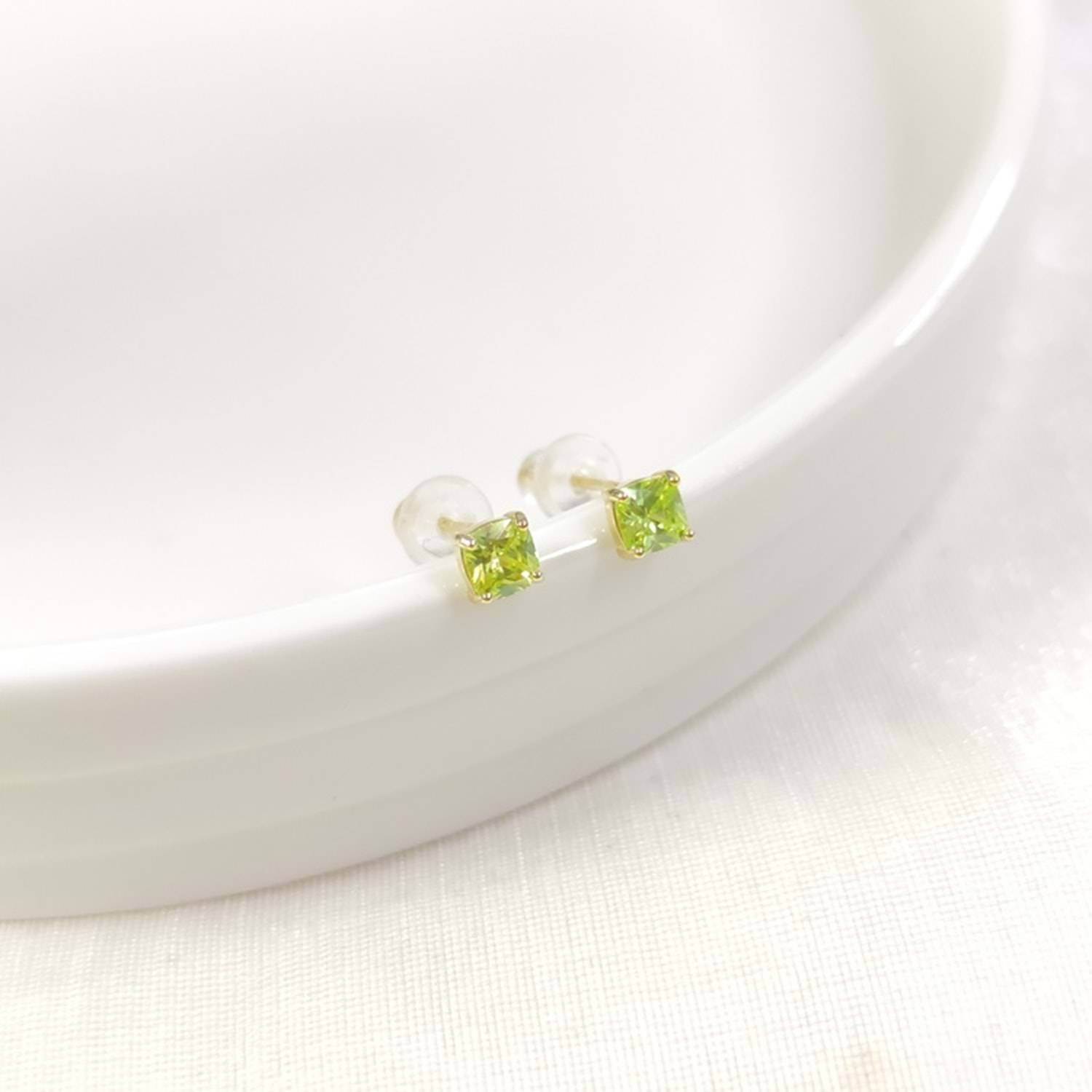 İTHAL 4 MM SOFT YEŞİL KARE TAŞ GÜMÜŞ ÇİVİ KÜPE