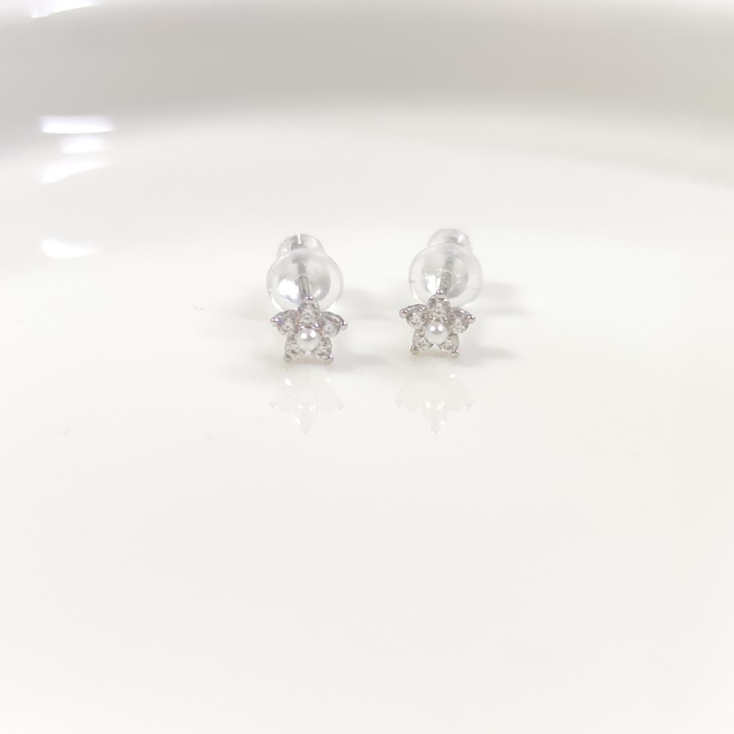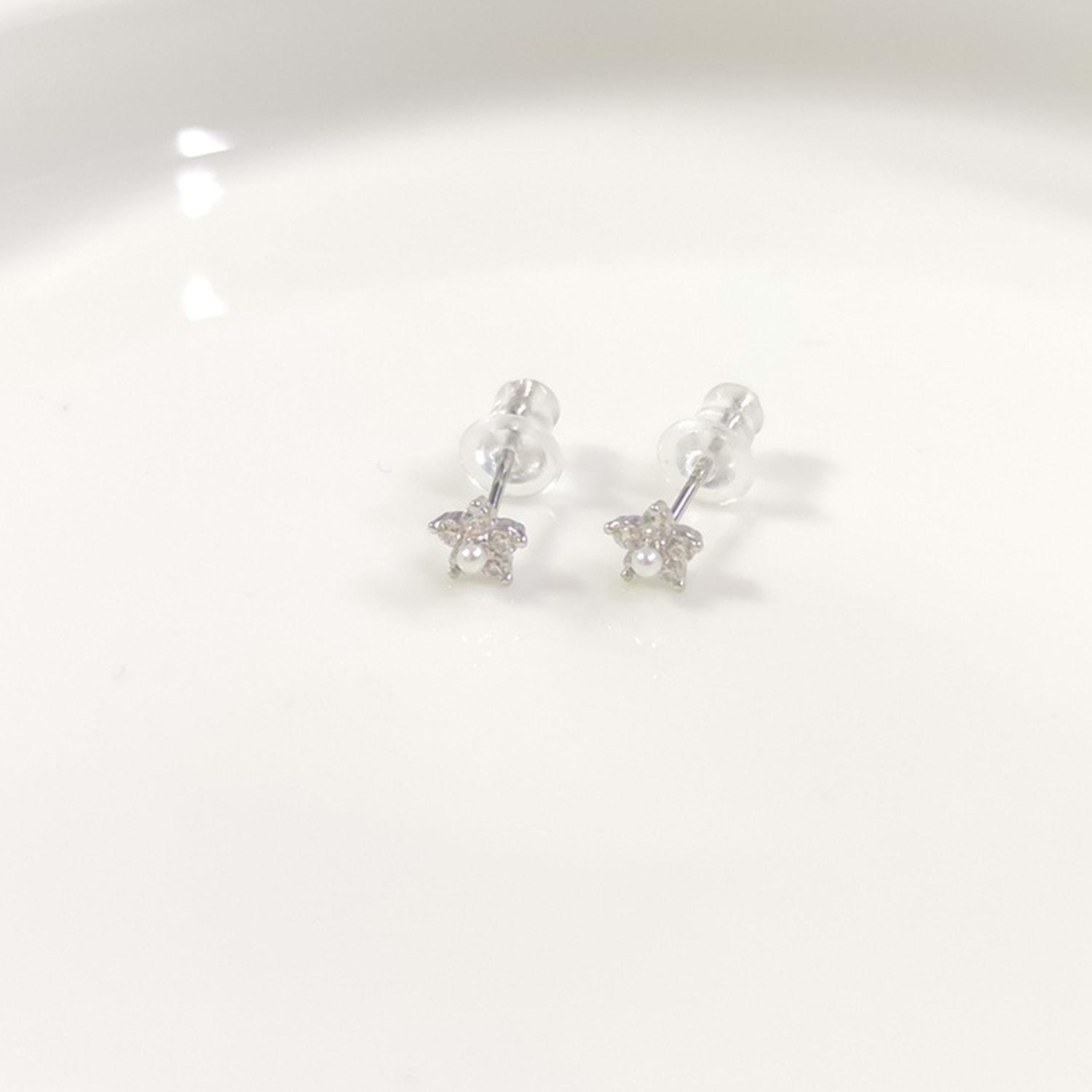 İTHAL 5 MM İNCİ DETAY ÇİÇEK GÜMÜŞ ÇİVİ KÜPE