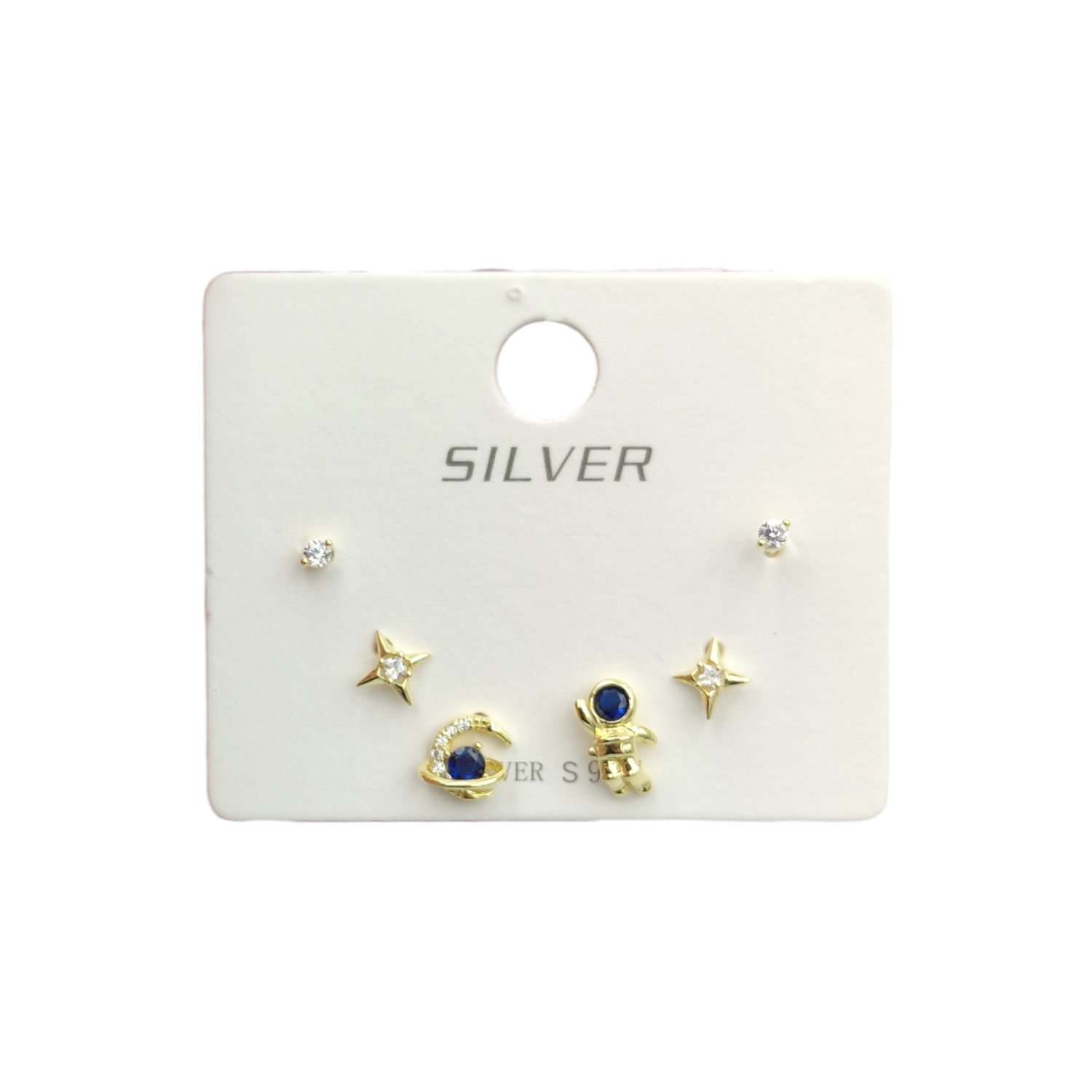 925 AYAR GÜMÜŞ ARKA KISIMLARI PLASTİKTİR HİLAL, ASTRONOT, KUTUP YILDIZI TEKTAŞ TOPLAM 6 ADET ÜRÜN