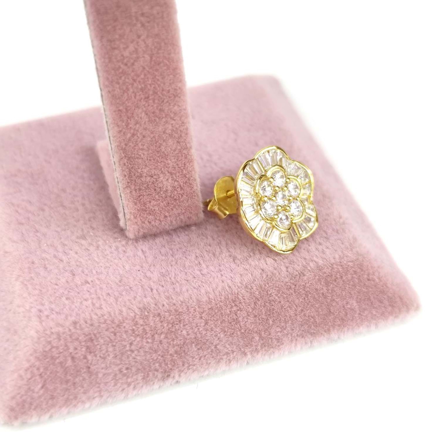 İTHAL BAGET TAŞLI ÇİÇEK GÜMÜŞ KÜPE