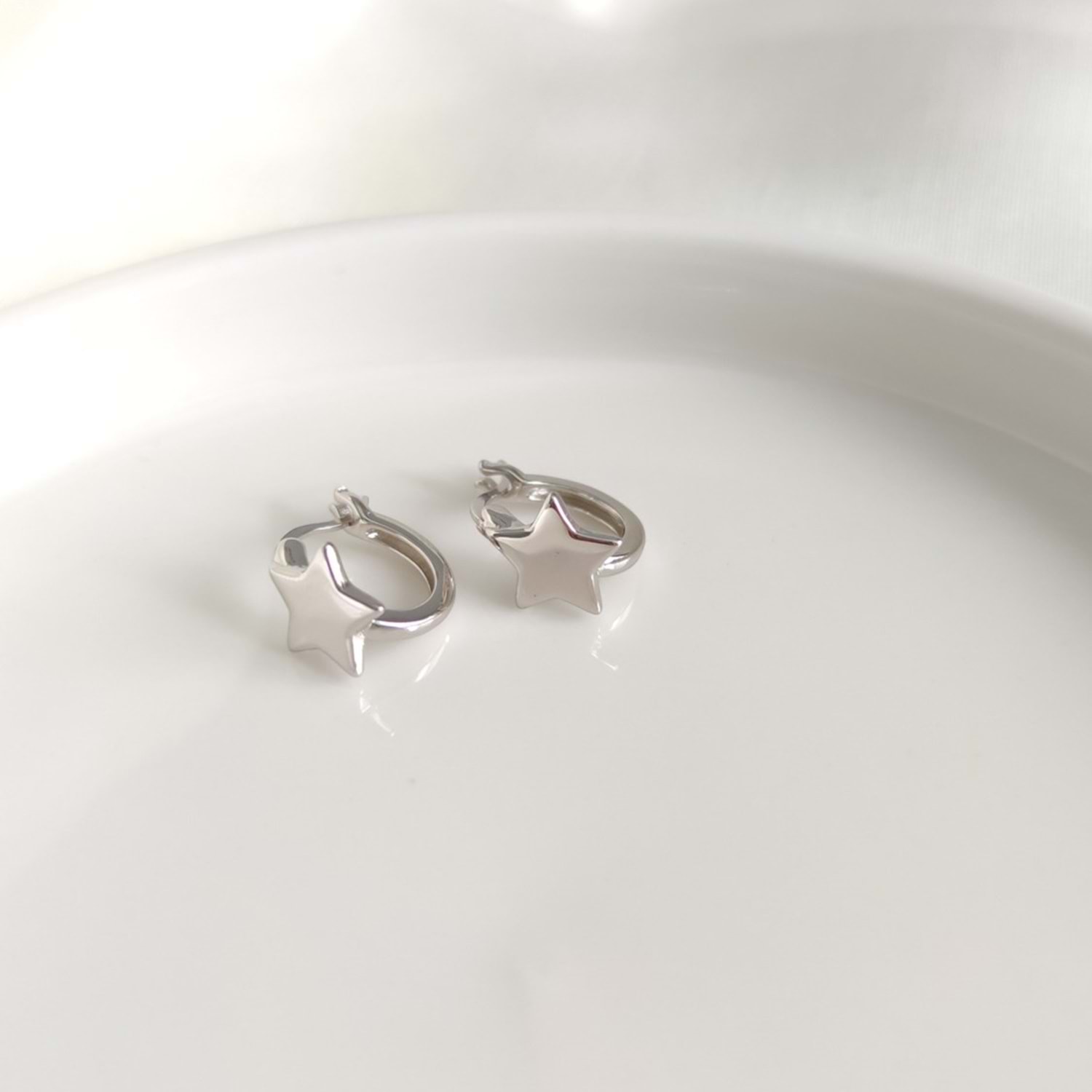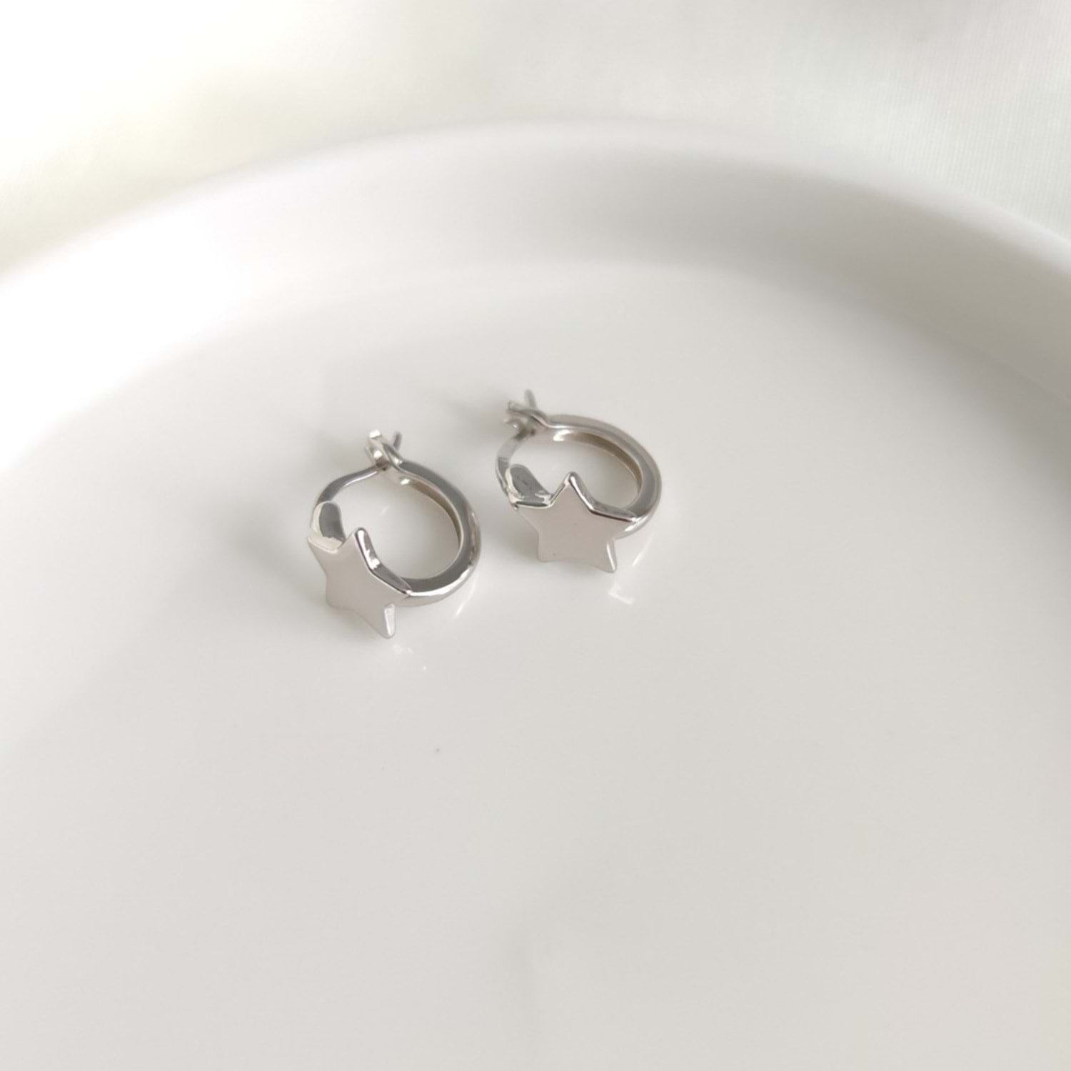 İTHAL DÜZ YILDIZ 10 MM HALKA GÜMÜŞ KÜPE - RODYUM BEYAZ