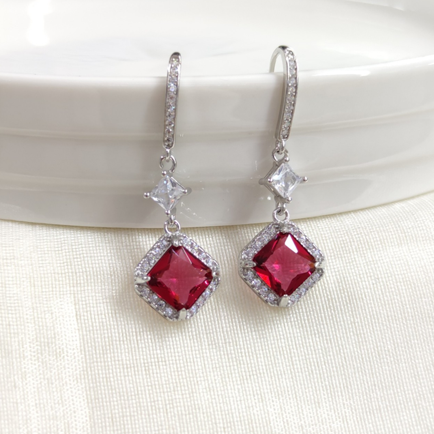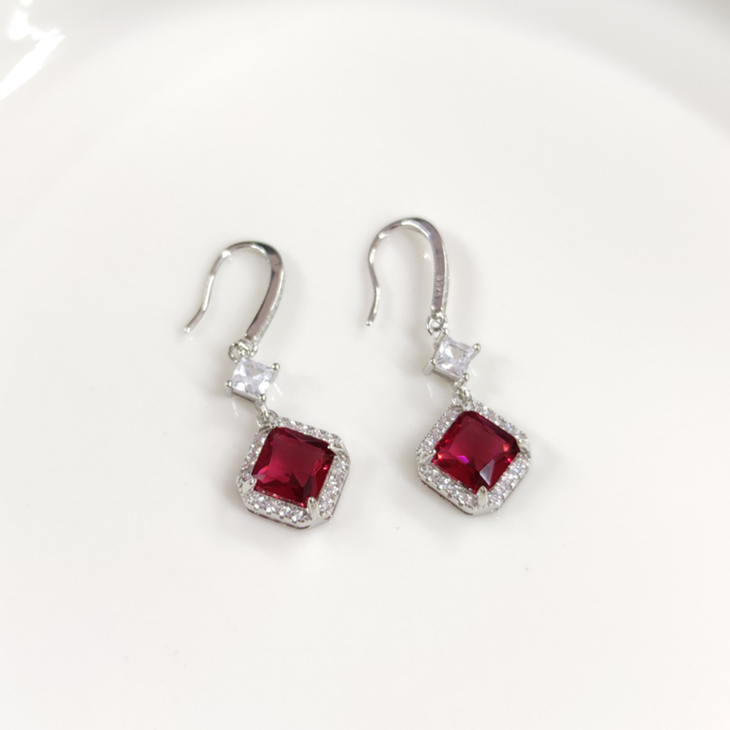 İTHAL FUŞYA TAŞLI SALLANTILI KARE HALKA GÜMÜŞ KÜPE