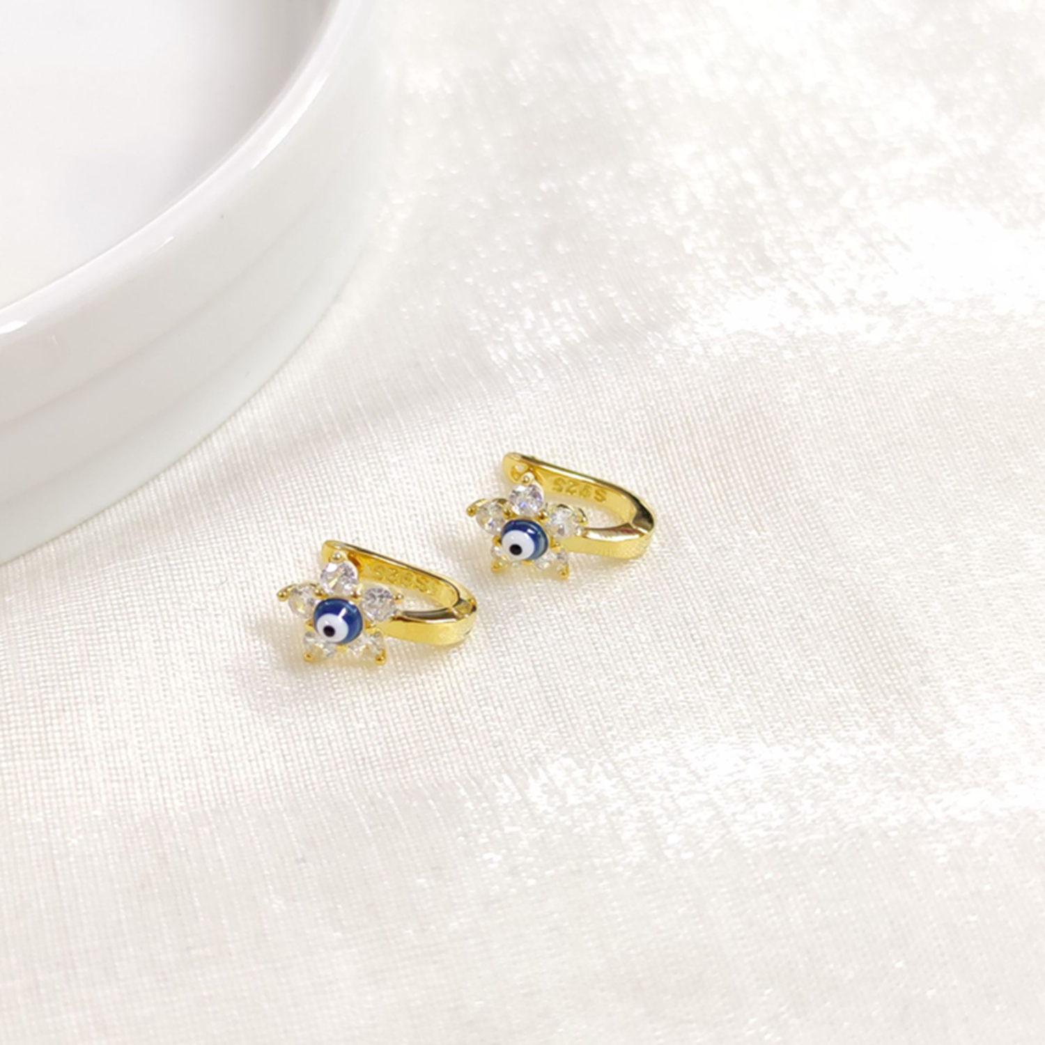 İTHAL LACİ MİNELİ ÇİÇEK GÜMÜŞ HALKA ÇOCUK KÜPE