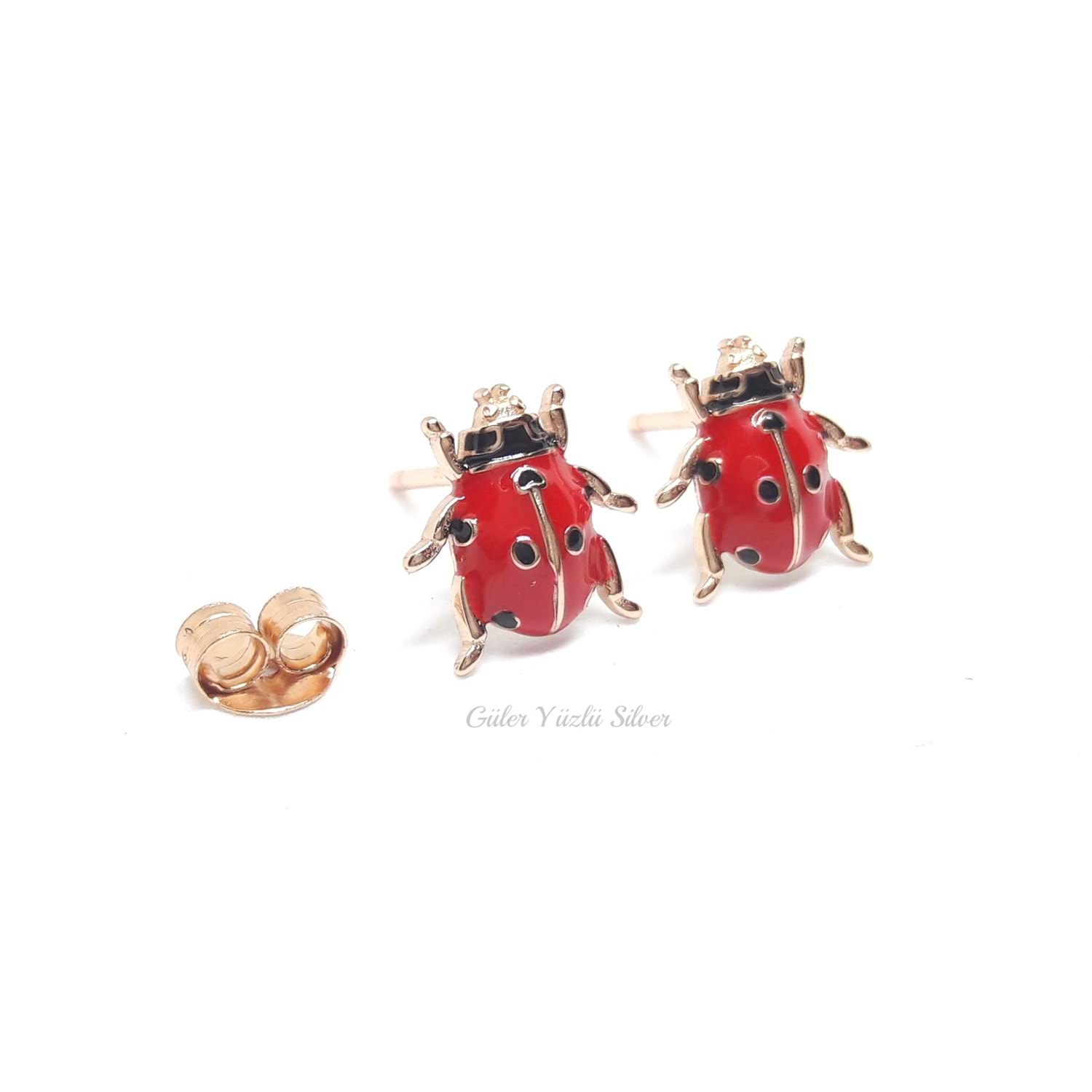 İTHAL MİNELİ UĞUR BÖCEĞİ GÜMÜŞ KÜPE - ROSE ALTIN KAPLAMA (BAKIR) - GYS01622-ROSE ALTIN KAPLAM-STD