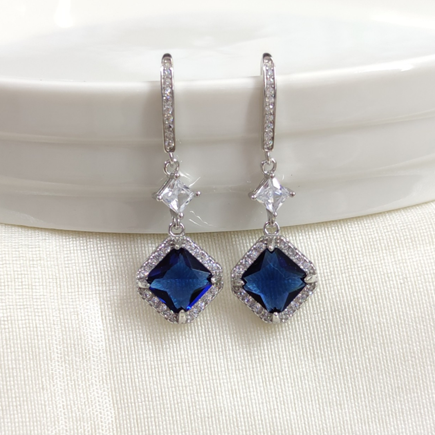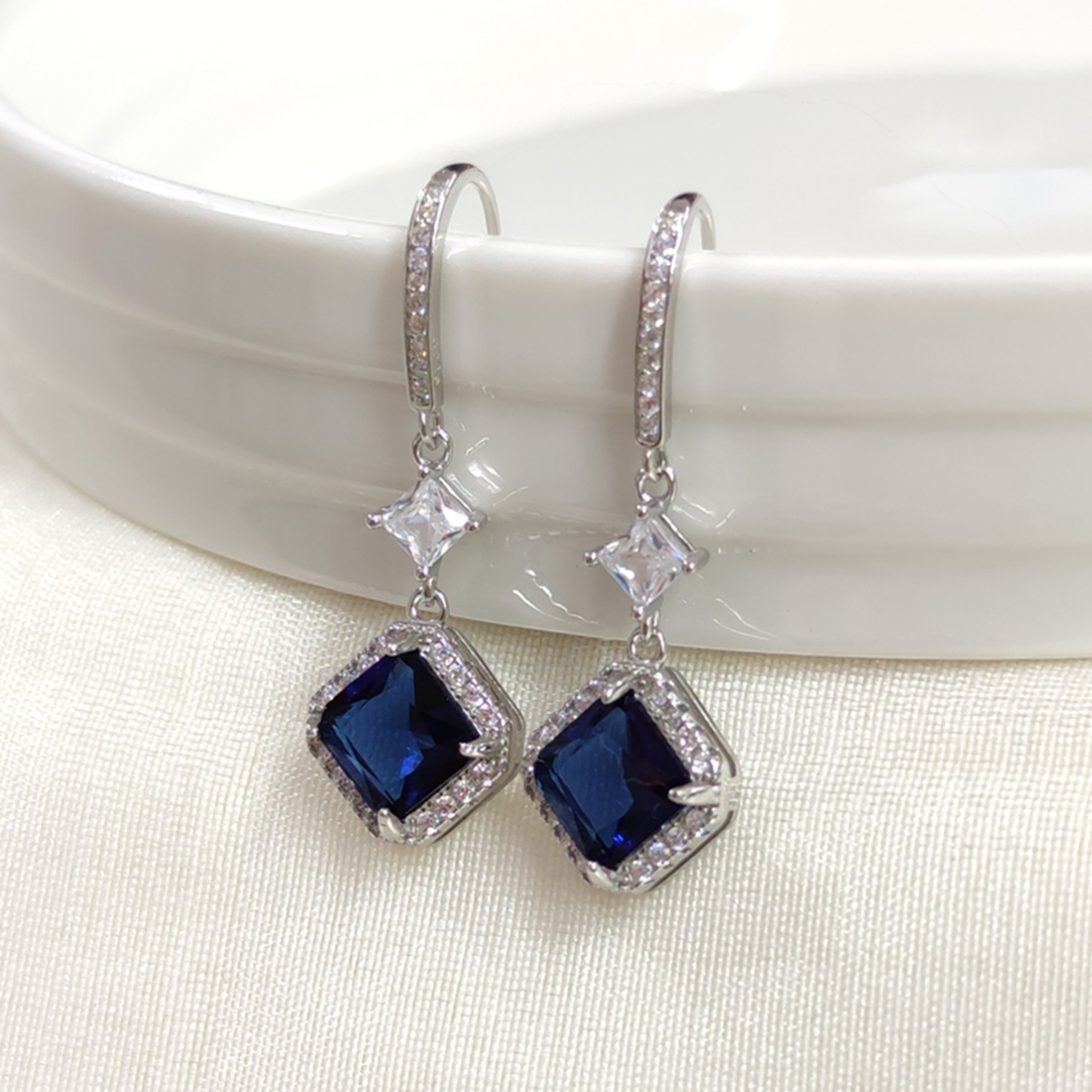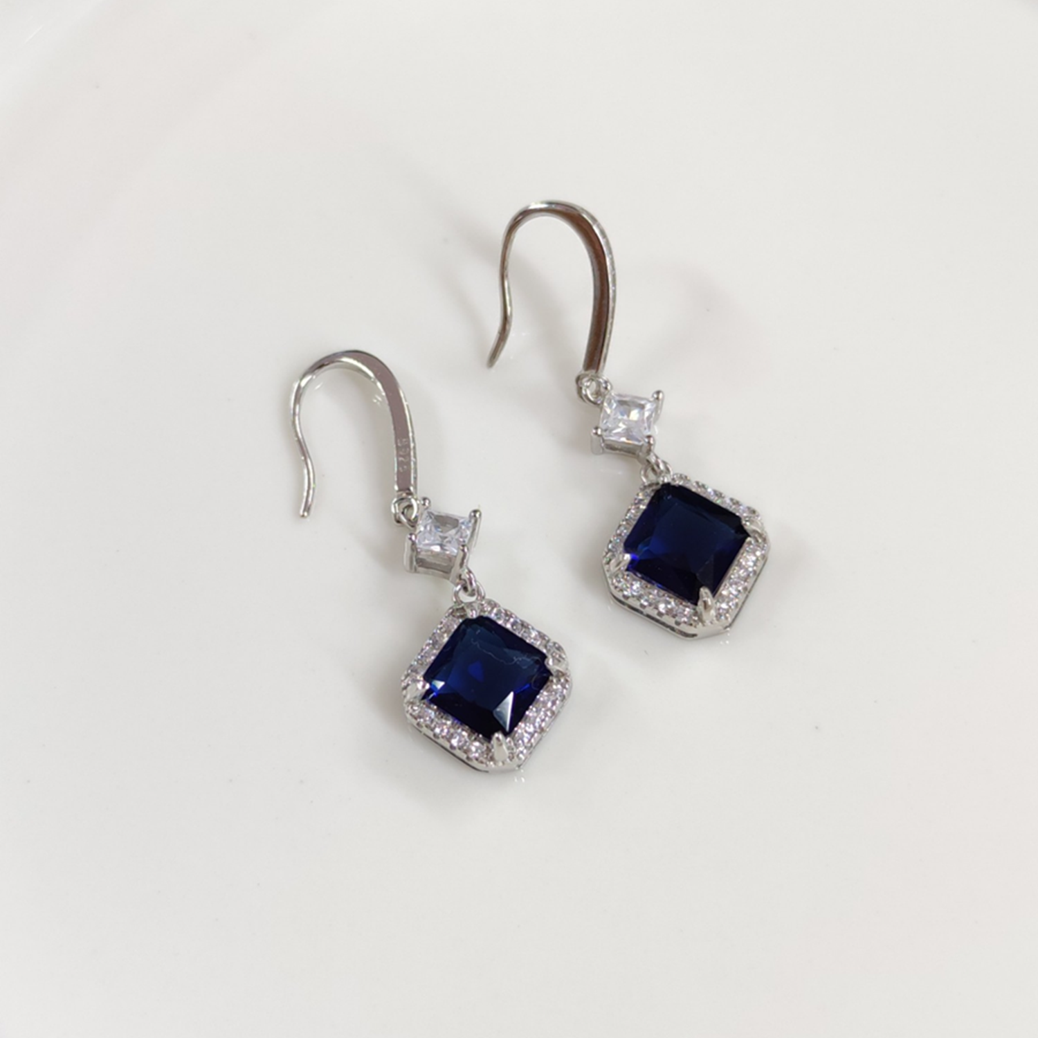 İTHAL SAFİR ZİRKON TAŞLI SALLANTILI KARE HALKA GÜMÜŞ KÜPE