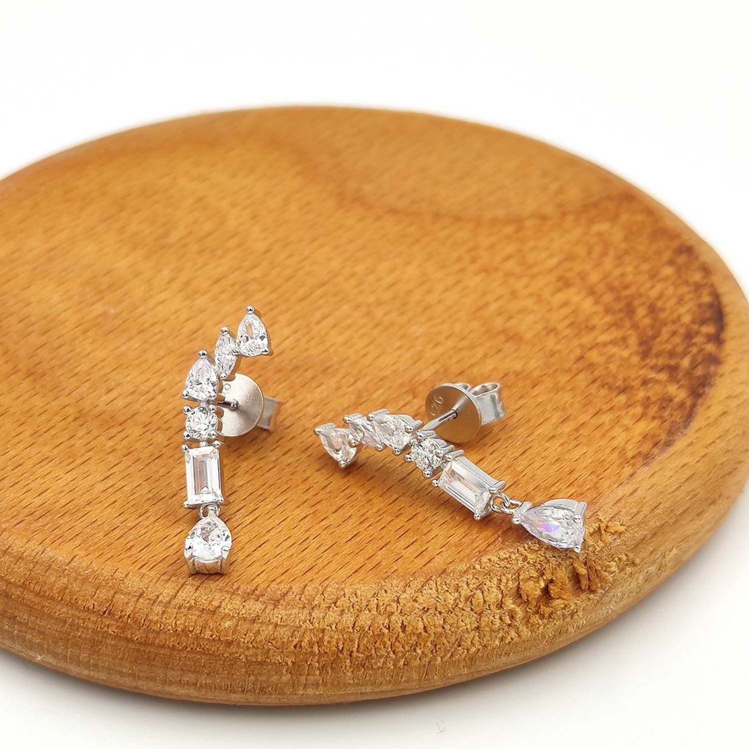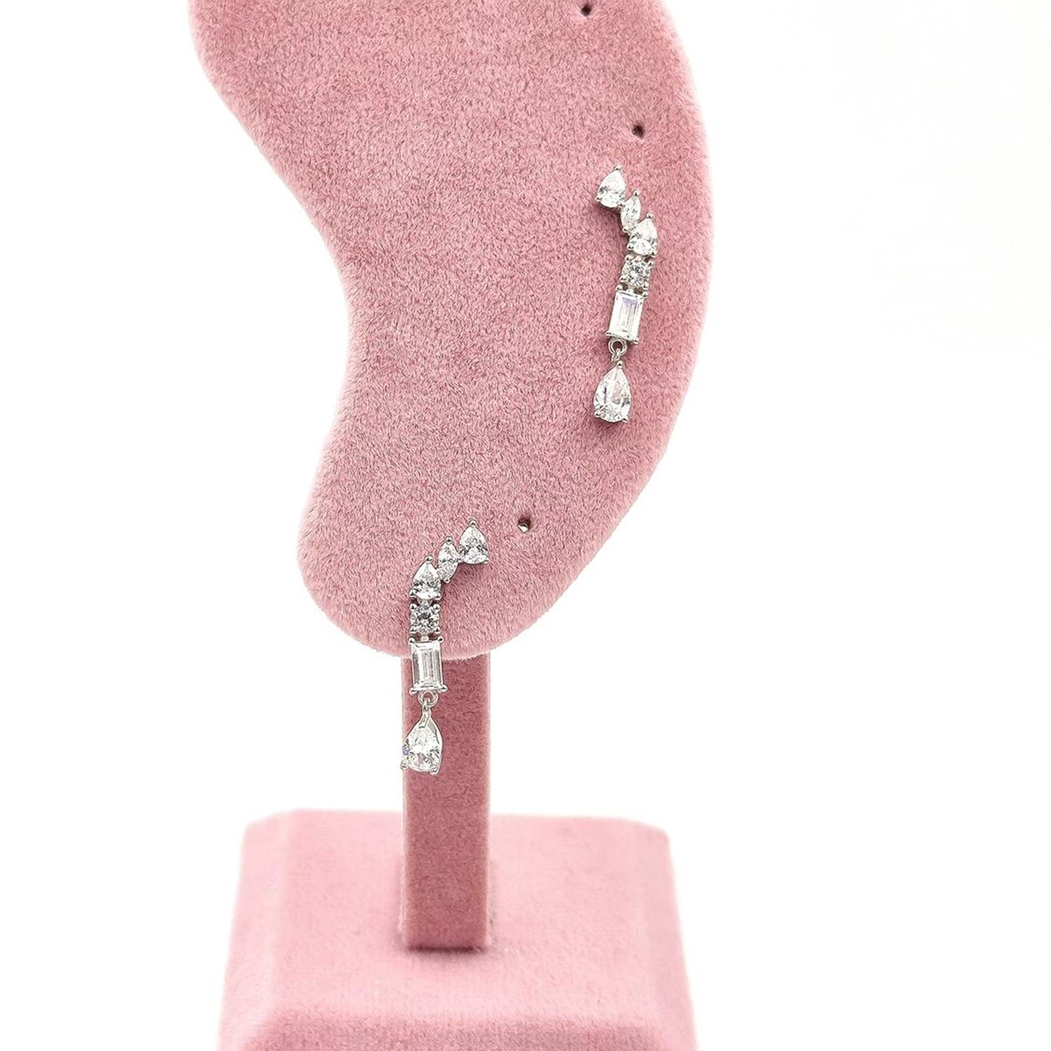 925 AYAR GÜMÜŞ ORT GRAM : 3,39 GR KÜPE UZUNLUK : 2,80 CM ÜSTTEKİ MİNİK ÜÇ DAMLA DELİĞİN ÜZERİNDE KALIYOR DAMLA BAGET TAŞLARIYLA HARİKA IŞILTILI KÜPEMİZ FARKLI TARZIYLA KENDİSİNE HAYRAN BIRAKACAK