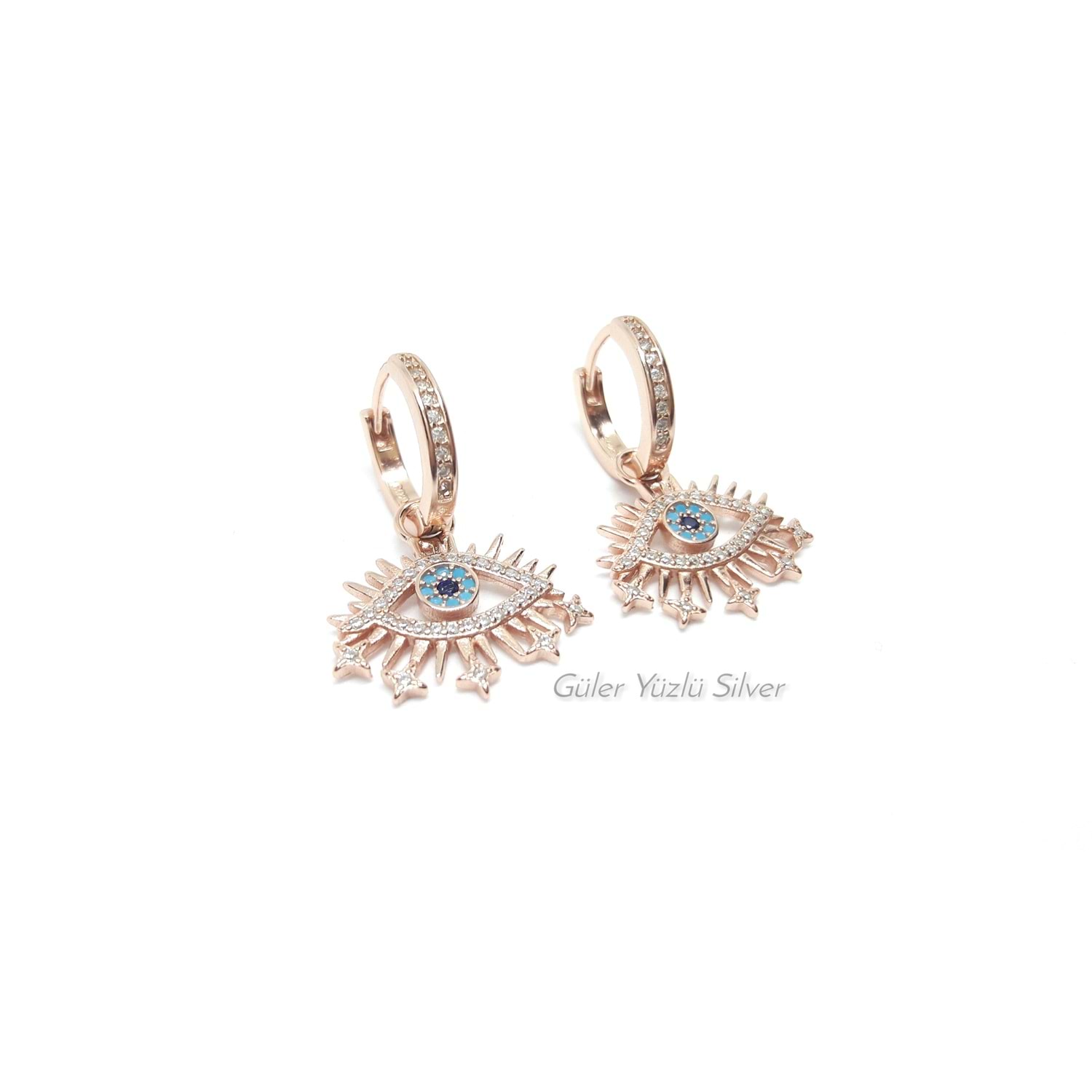 İTHAL SALLANTILI TAŞLI HALKA GÖZ GÜMÜŞ KÜPE - ROSE ALTIN KAPLAMA