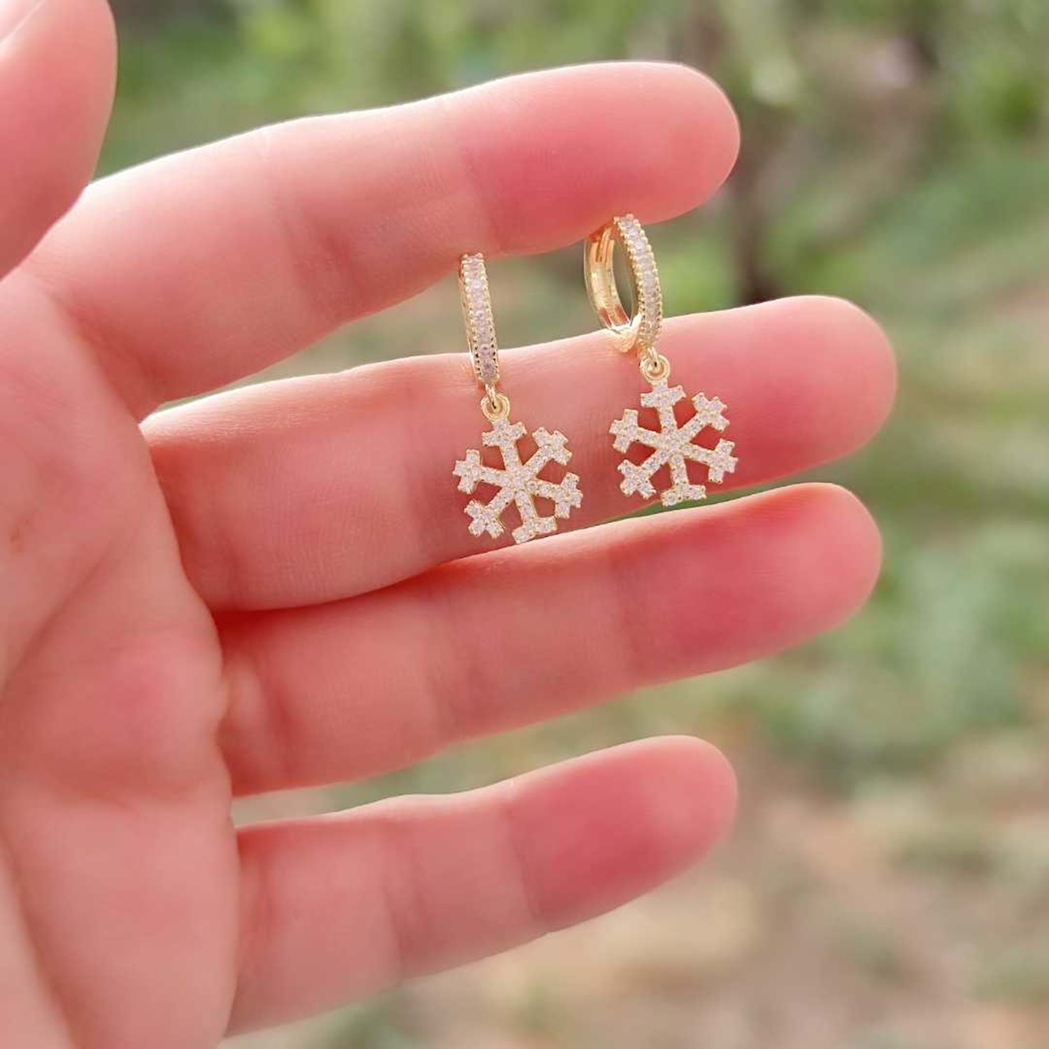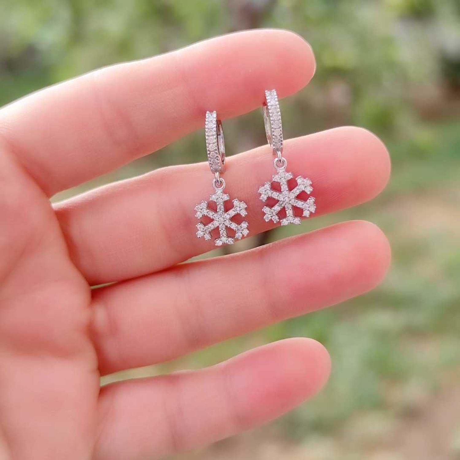 925 AYAR GÜMÜŞ ZİRKON TAŞLI KAR TANESİ HALKA GÜMÜŞ KÜPE HALKA ÇAPI : 9 mm ORT GRAM : 3,61 gr KAR TANESİ BOYUT : 1,10 cm HALKA ÇAPI BAZ ALINARAK ÇOCUK VE YETİŞKİNLER İÇİN UYGUNDUR. SATIN ALDIĞINIZ ÜRÜNLER AYNI GÜN İÇİNDE KARGOYA TESLİM EDİLMEKTEDİR. KİMYASAL ÜRÜNLERLE TEMASINDAN KAÇINILMALIDIR.