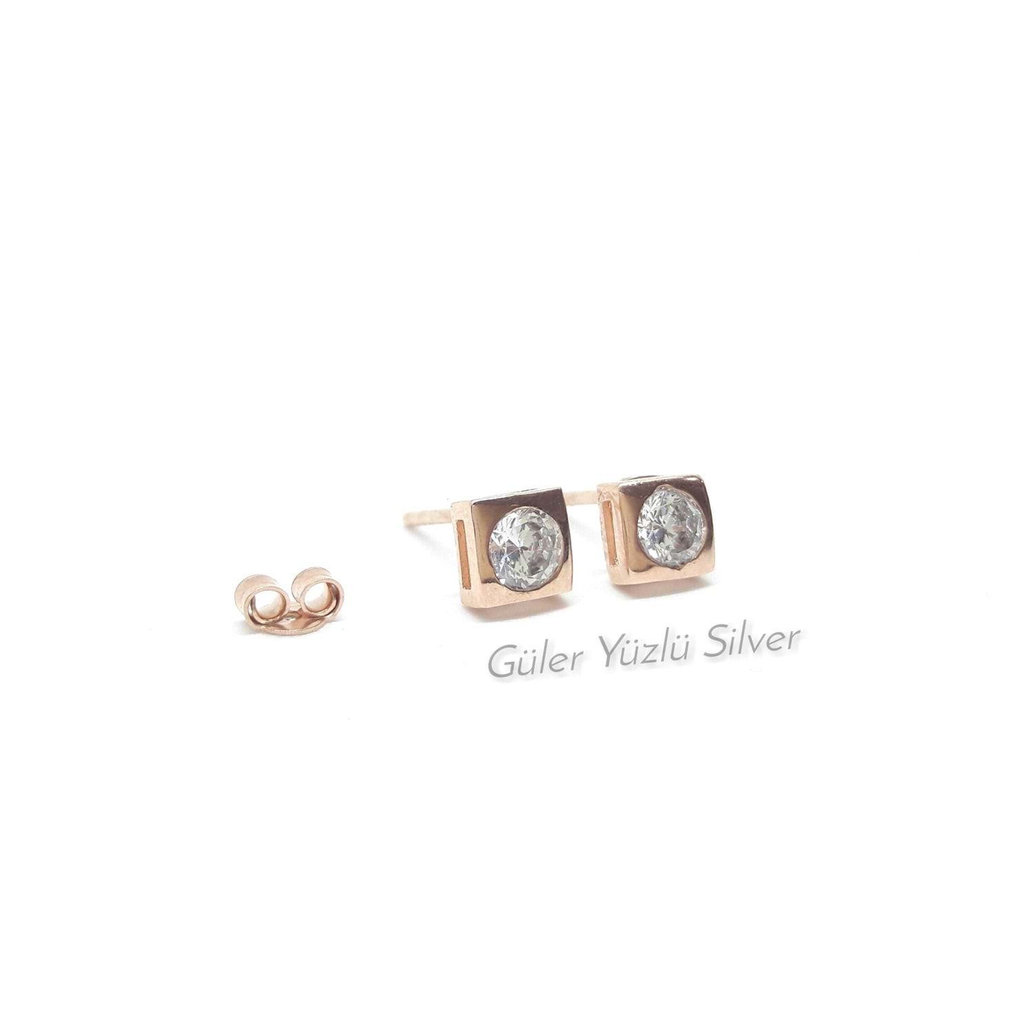 KARE PIRLANTA MODELİ ÇİVİ GÜMÜŞ KÜPE - ROSE ALTIN KAPLAMA
