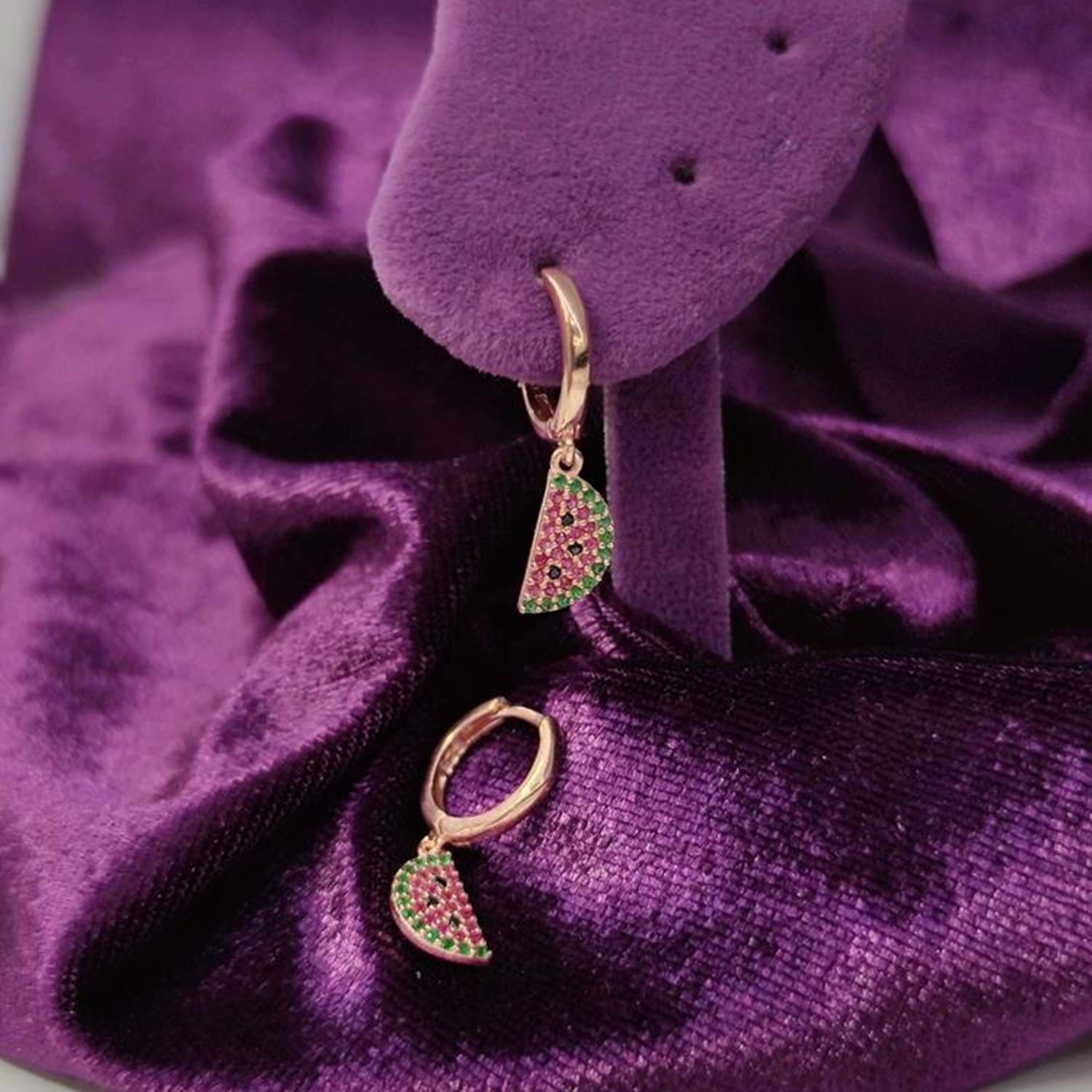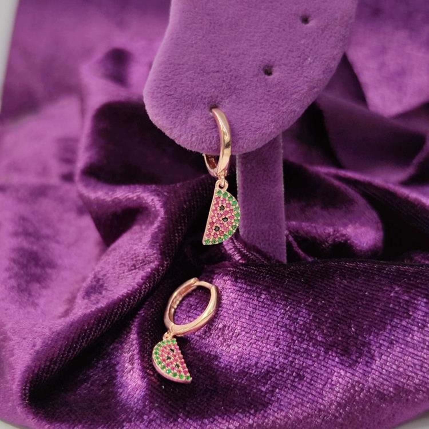 ZİRKON TAŞLI KARPUZ GÜMÜŞ HALKA KÜPE