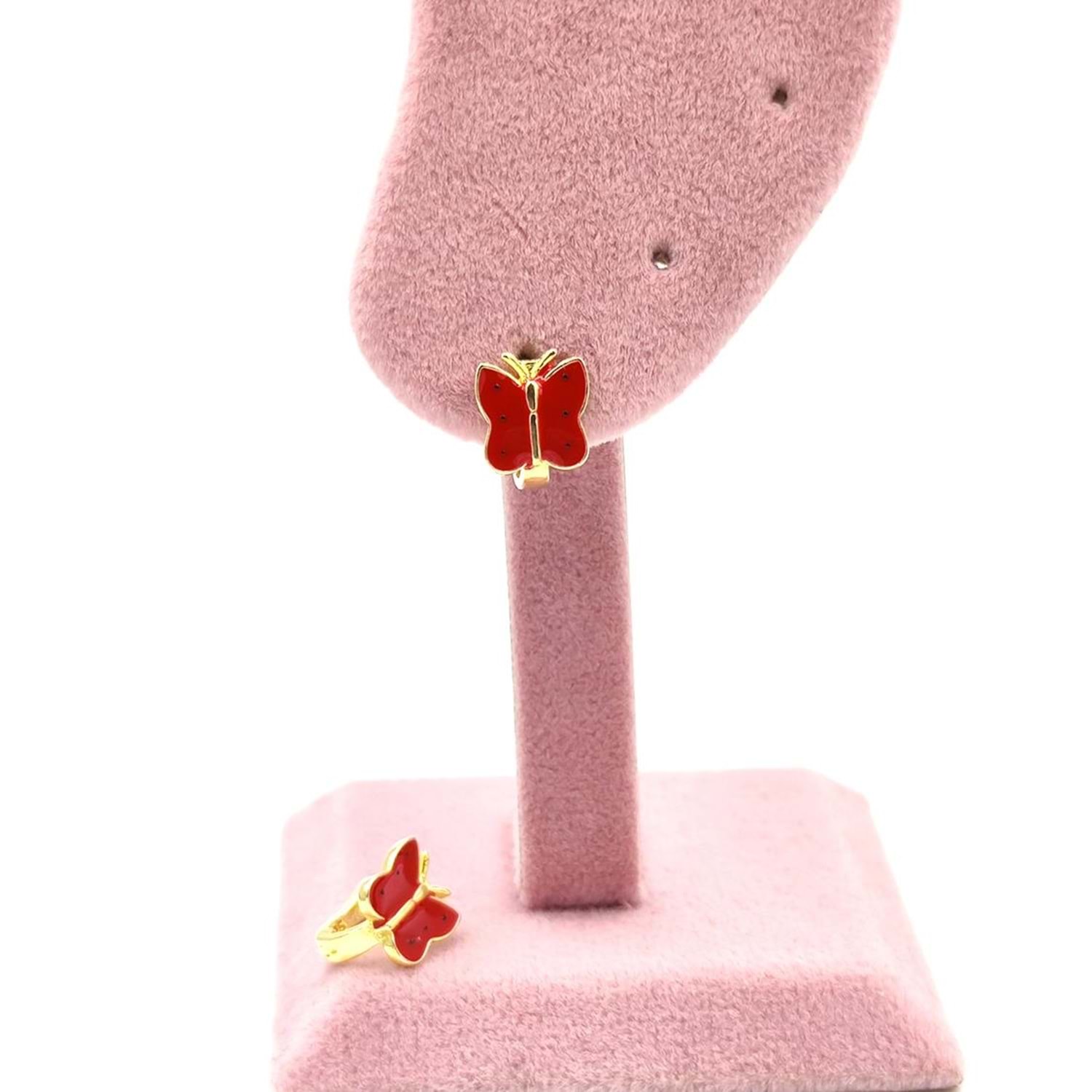KIRMIZI MİNELİ KELEBEK ÇOCUK GÜMÜŞ KÜPE