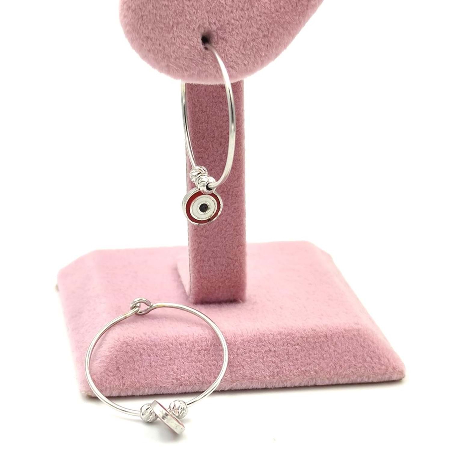 KIRMIZI MİNELİ NAZAR BONCUK GÜMÜŞ HALKA KÜPE