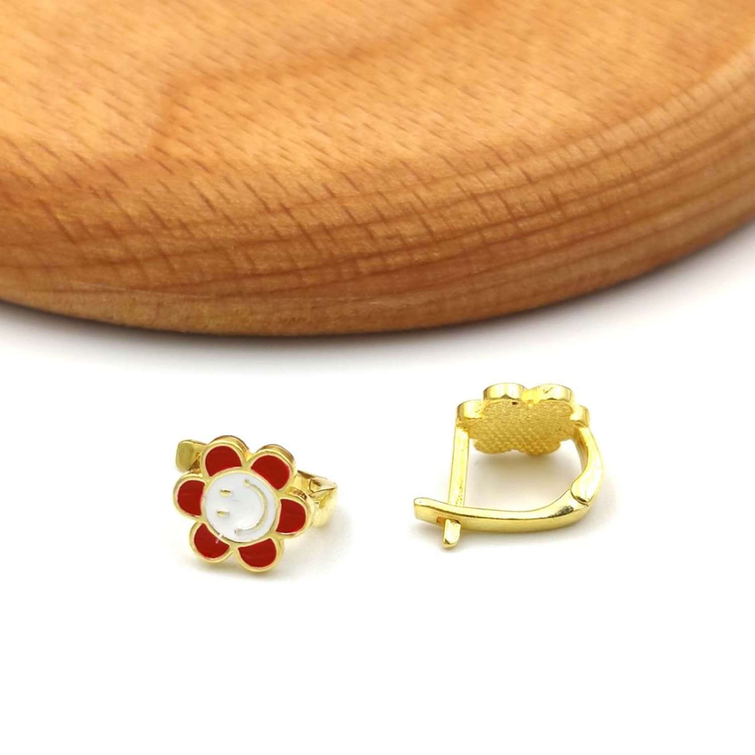 KIRMIZI SMILE PAPATYA ÇOCUK GÜMÜŞ KÜPE - ALTIN SARI
