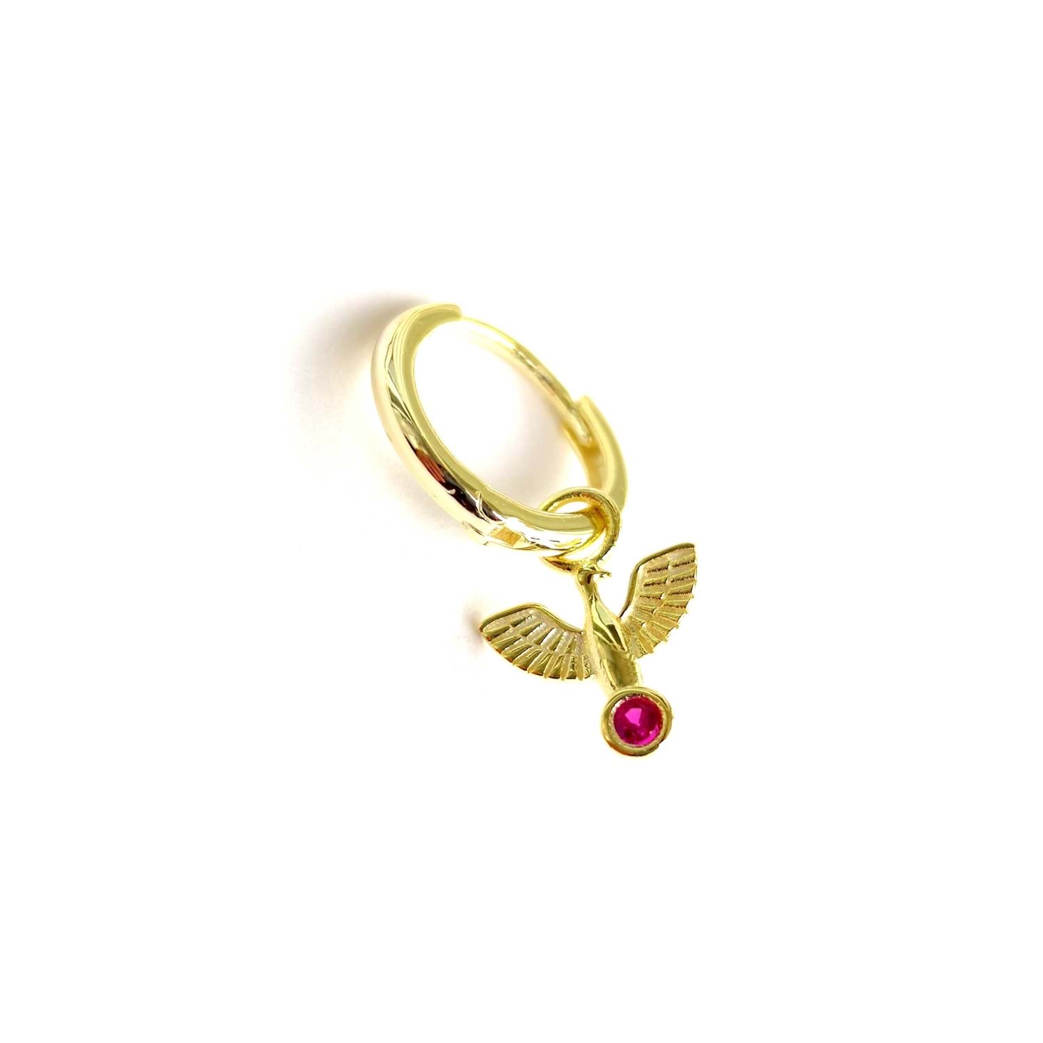 KIRMIZI TAŞLI ANKA TEK GÜMÜŞ HALKA KÜPE - ALTIN SARI