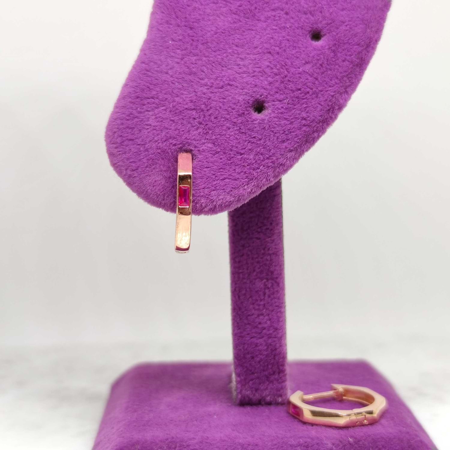 KIRMIZI TAŞLI KÖŞELİ HALKA GÜMÜŞ KÜPE - ROSE BAKIR