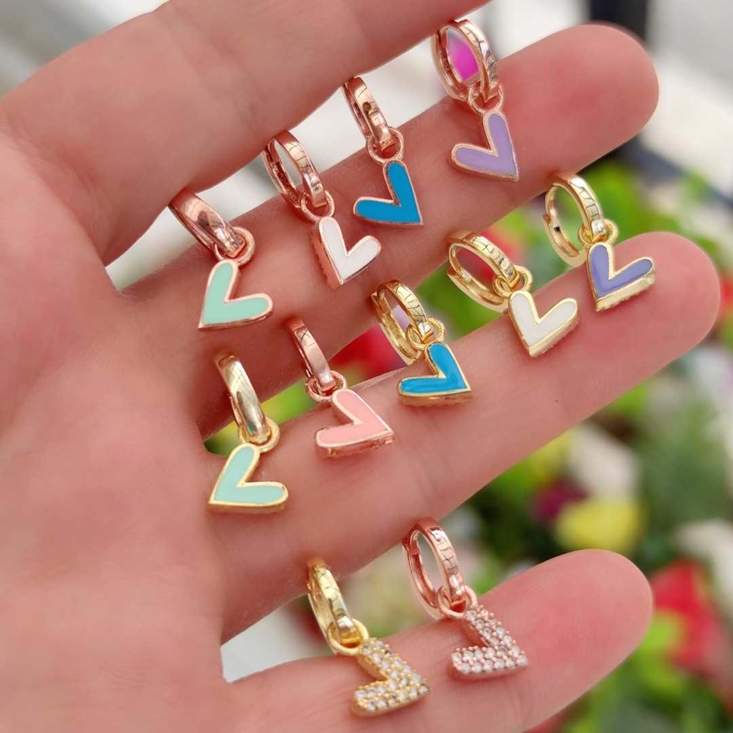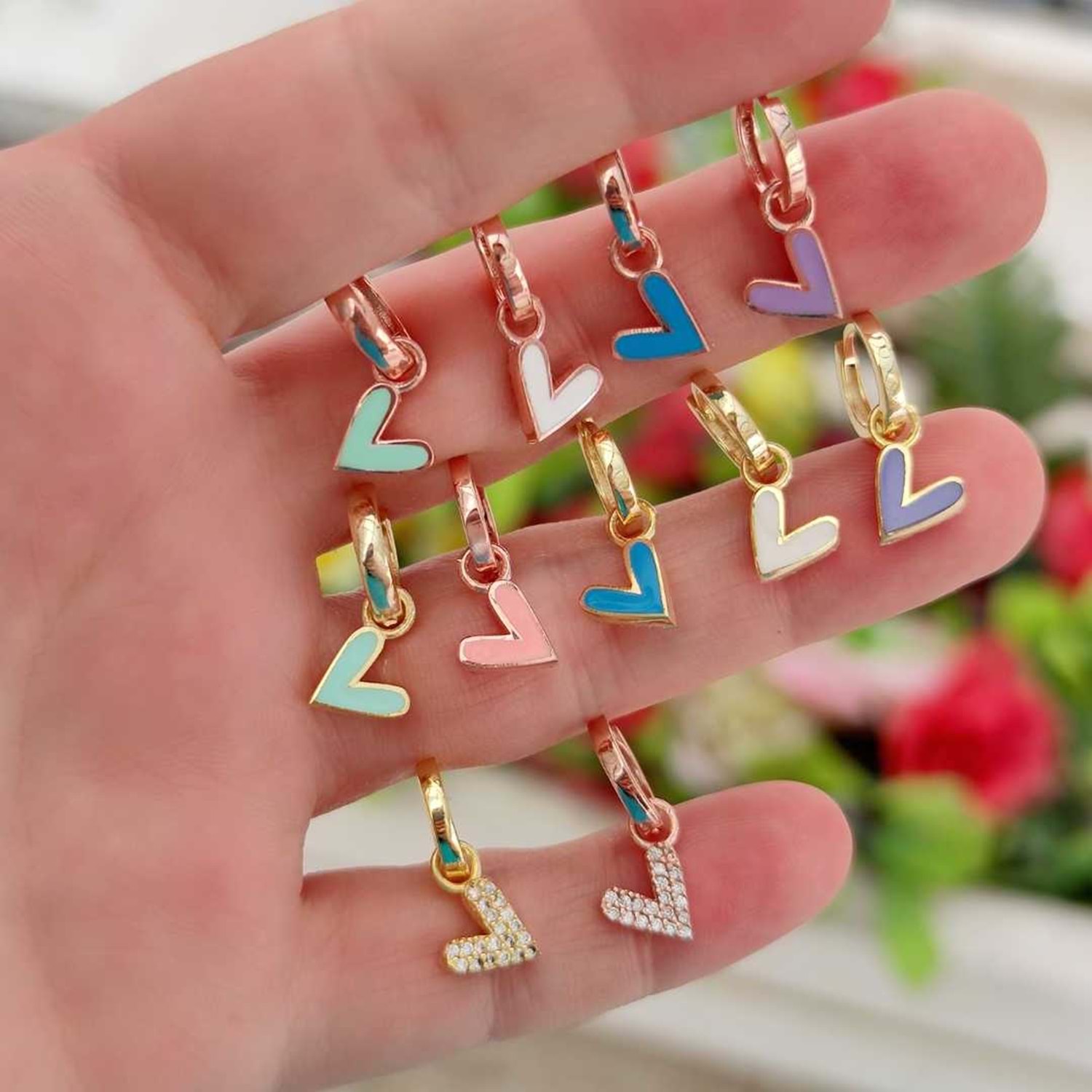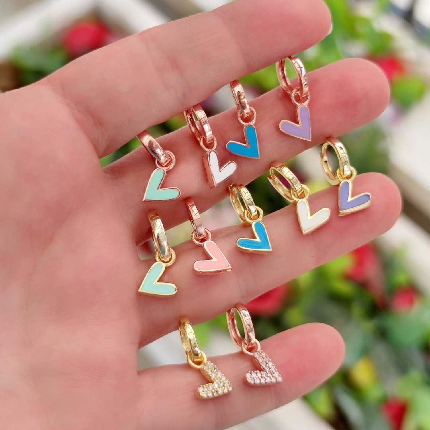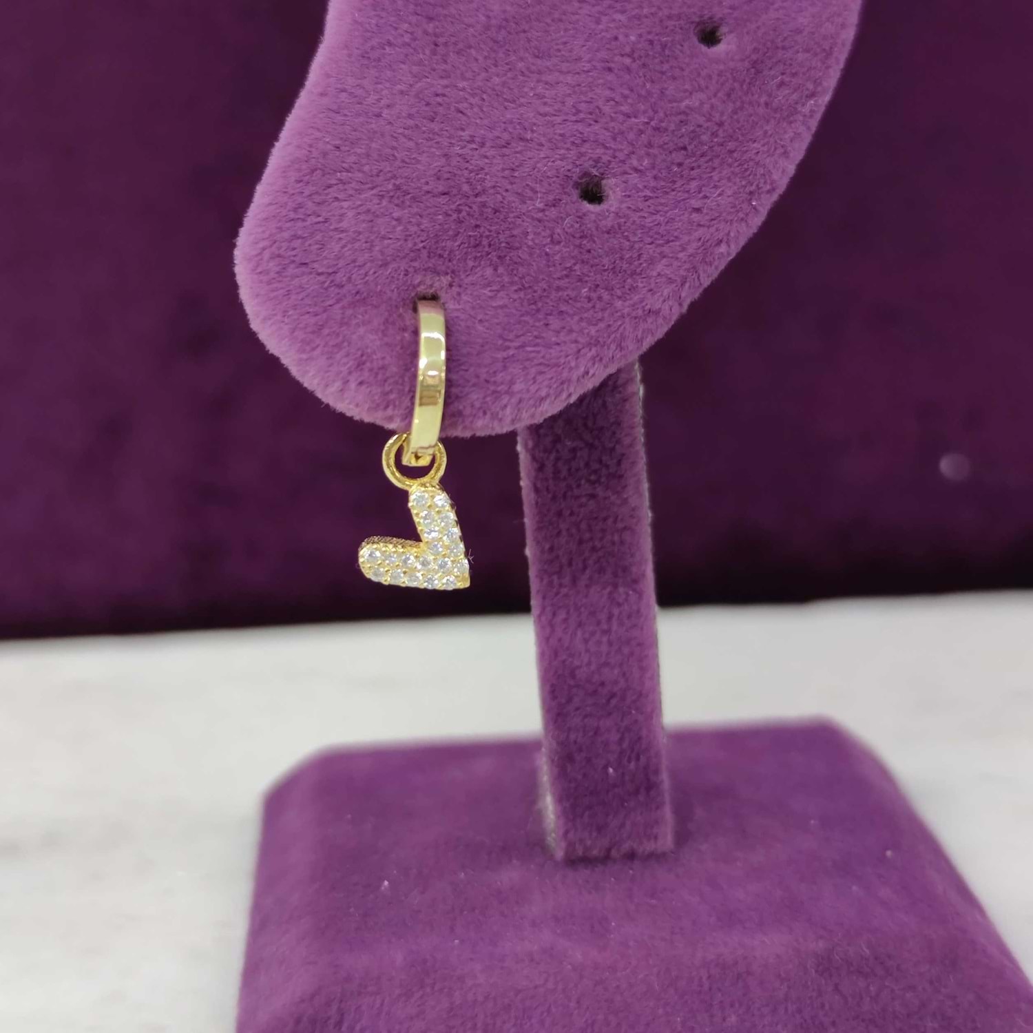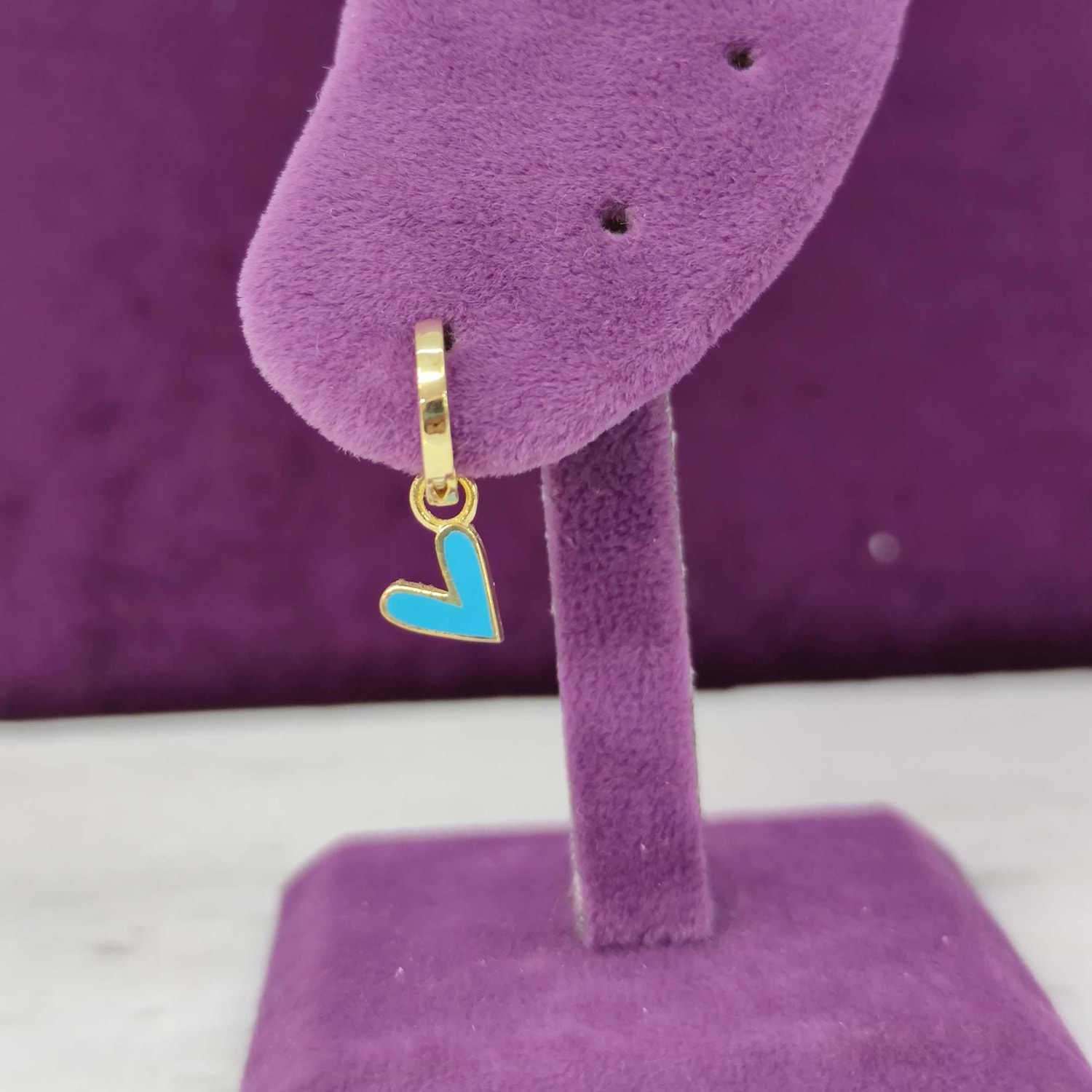 MAVİ MİNELİ KALP TEK HALKA KÜPE - ALTIN SARI