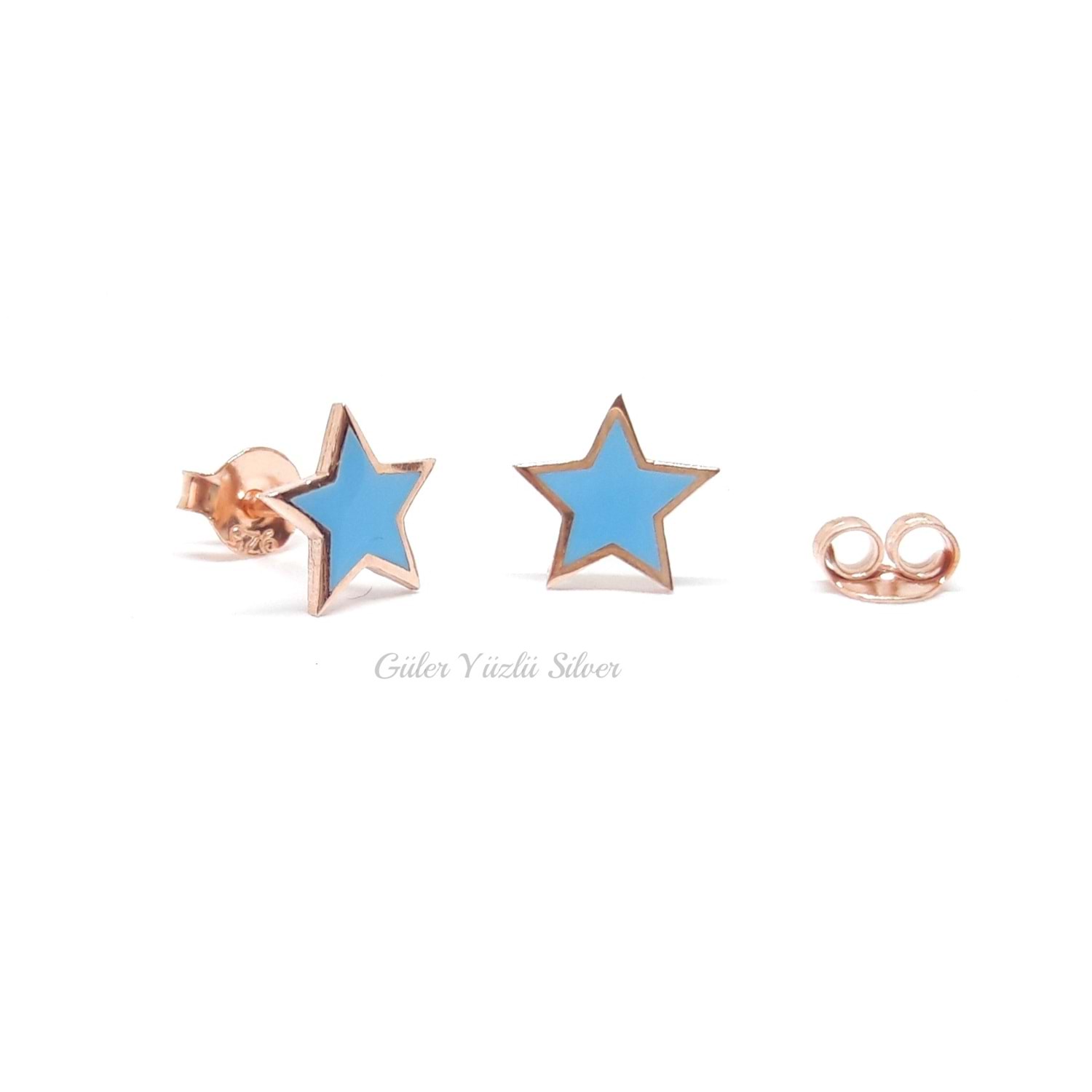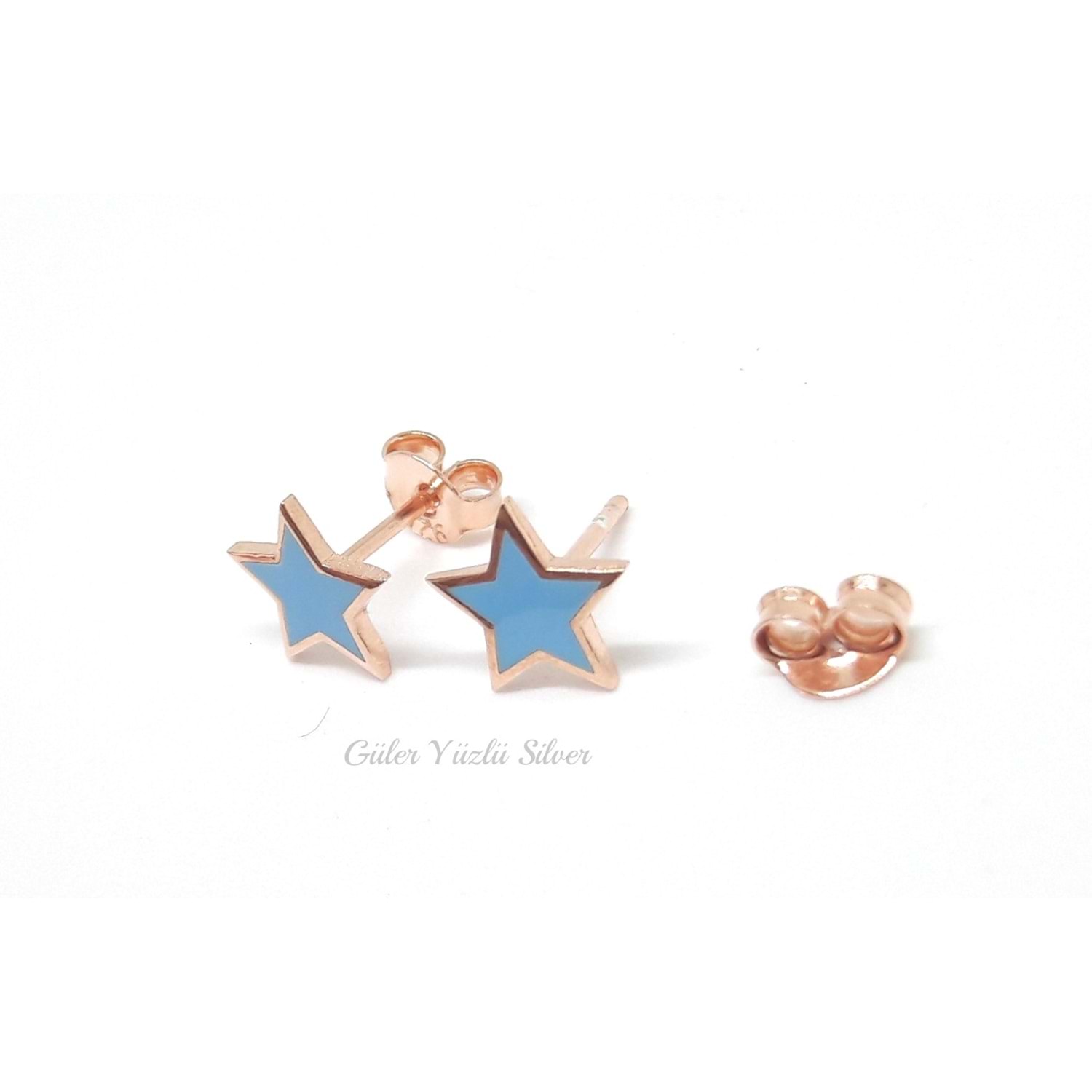 MAVİ NEON YILDIZ GÜMÜŞ KÜPE