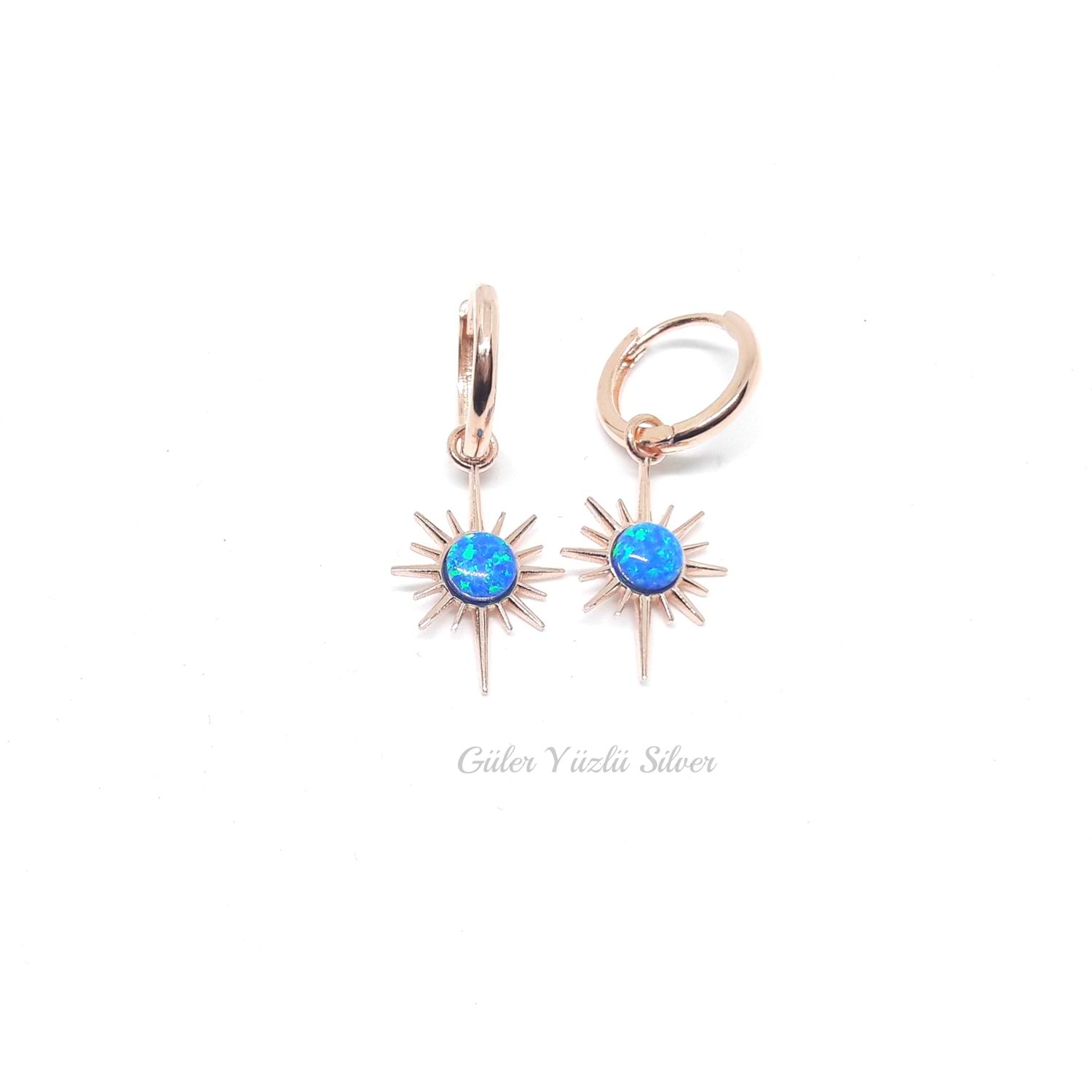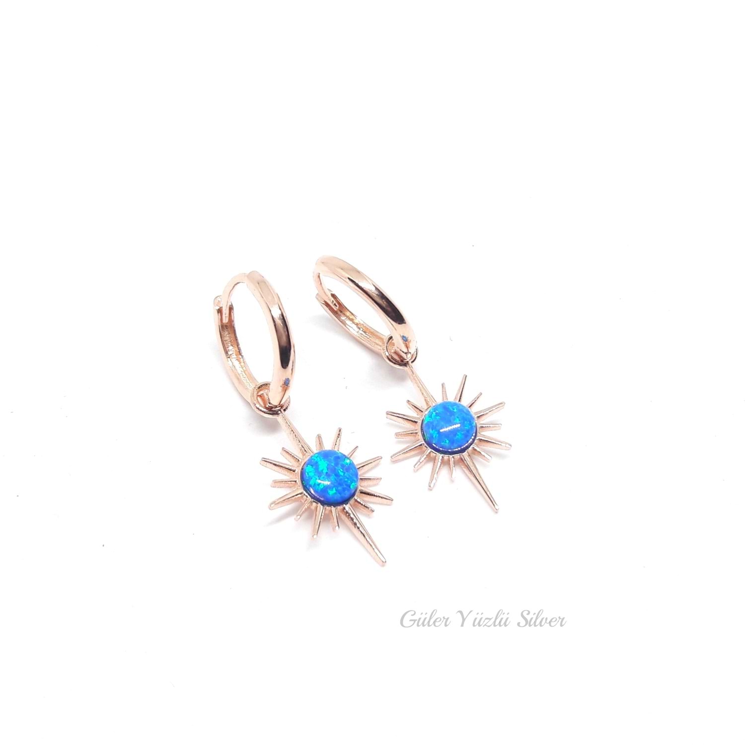 925 Ayar Gümüş Mavi Opal Taşlı 30 mm * 10 mm Boyutunda