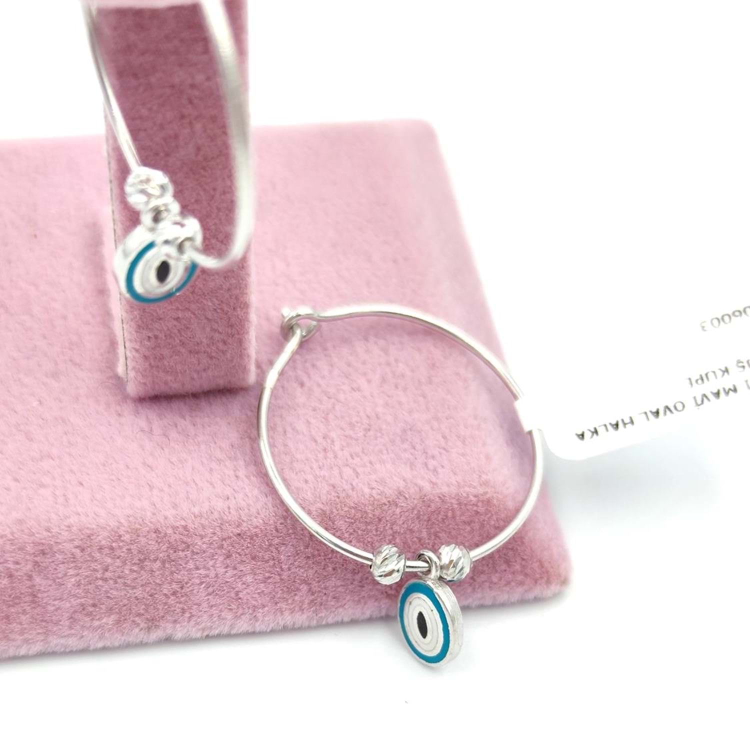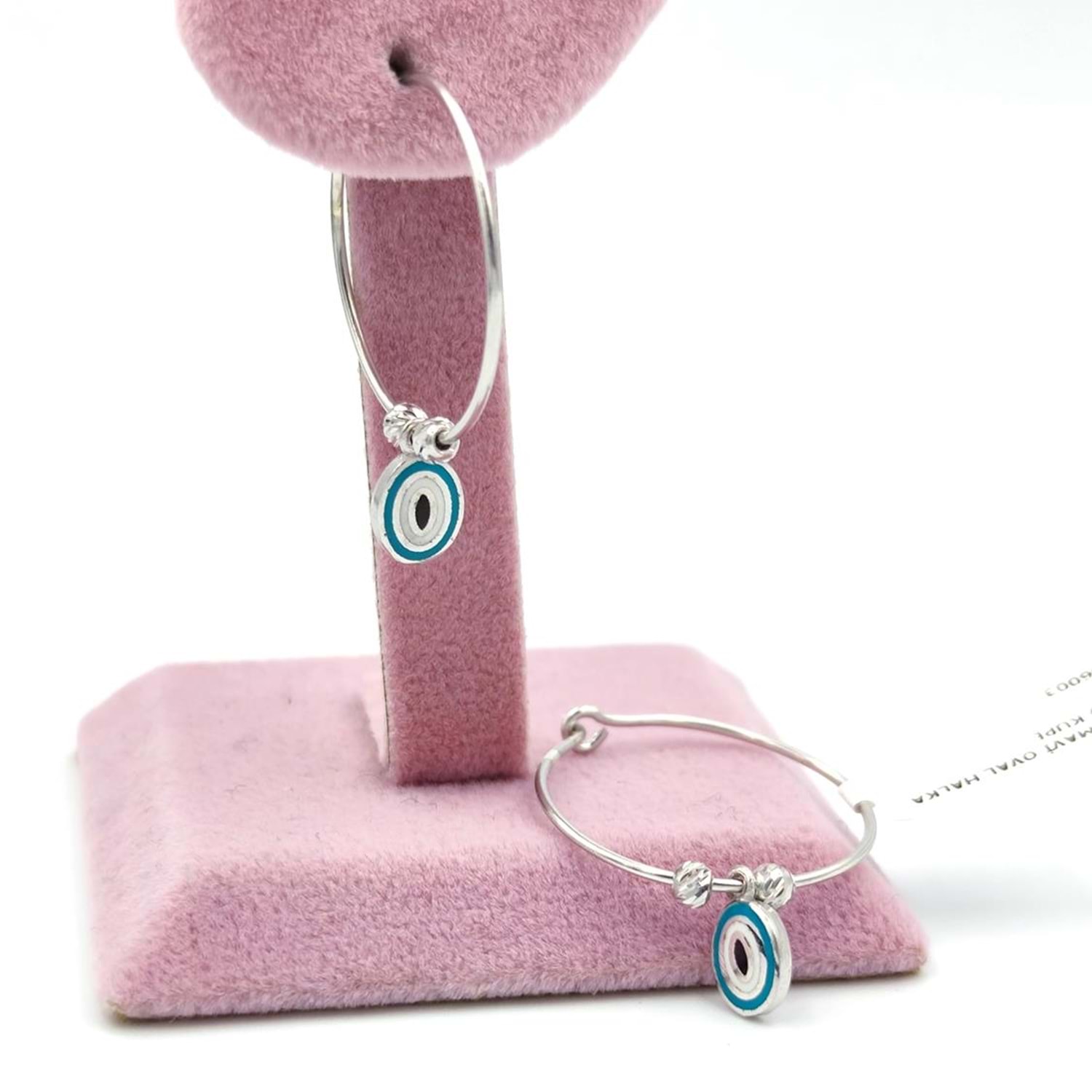 MİNELİ MAVİ OVAL HALKA GÜMÜŞ KÜPE